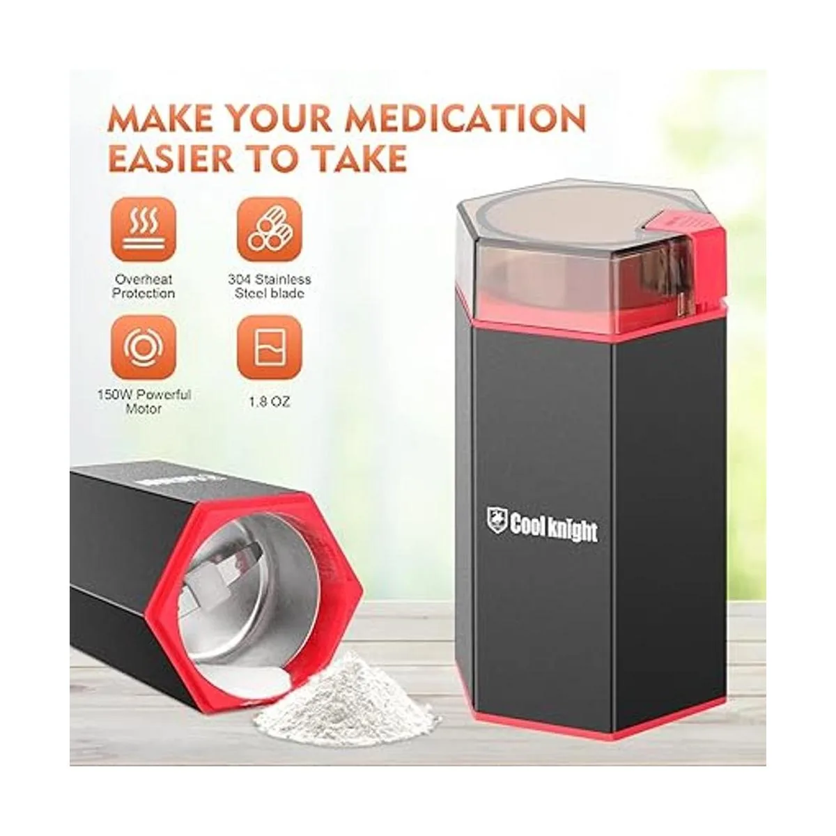 COOL KNIGHT Trituradora eléctrica de píldoras, adecuada para moler y pulverizar múltiples píldoras, medicamentos pequeños o grandes y tabletas de vitaminas para polvo fino