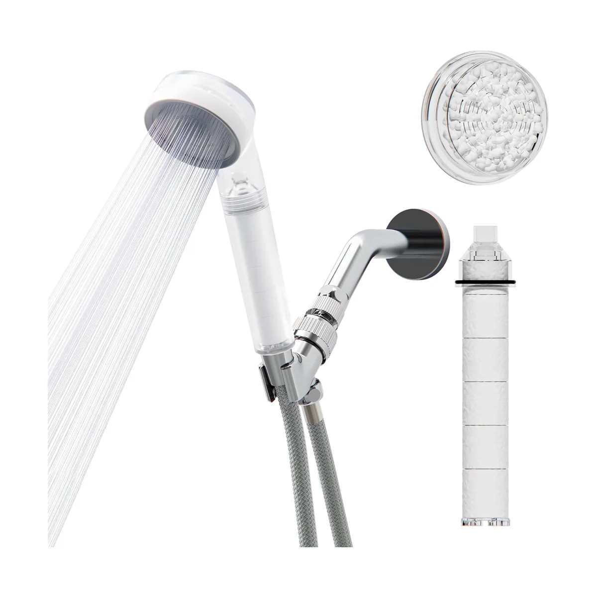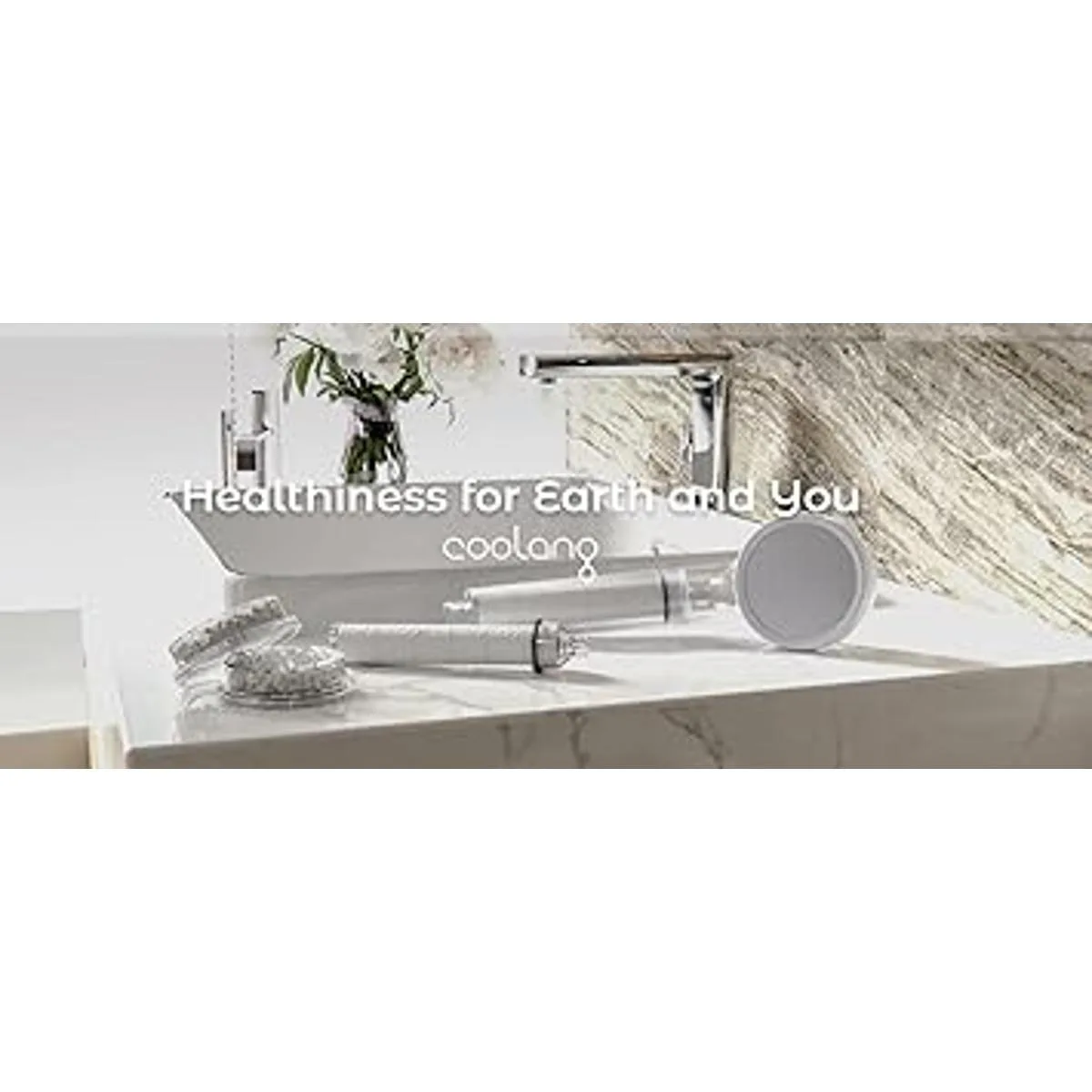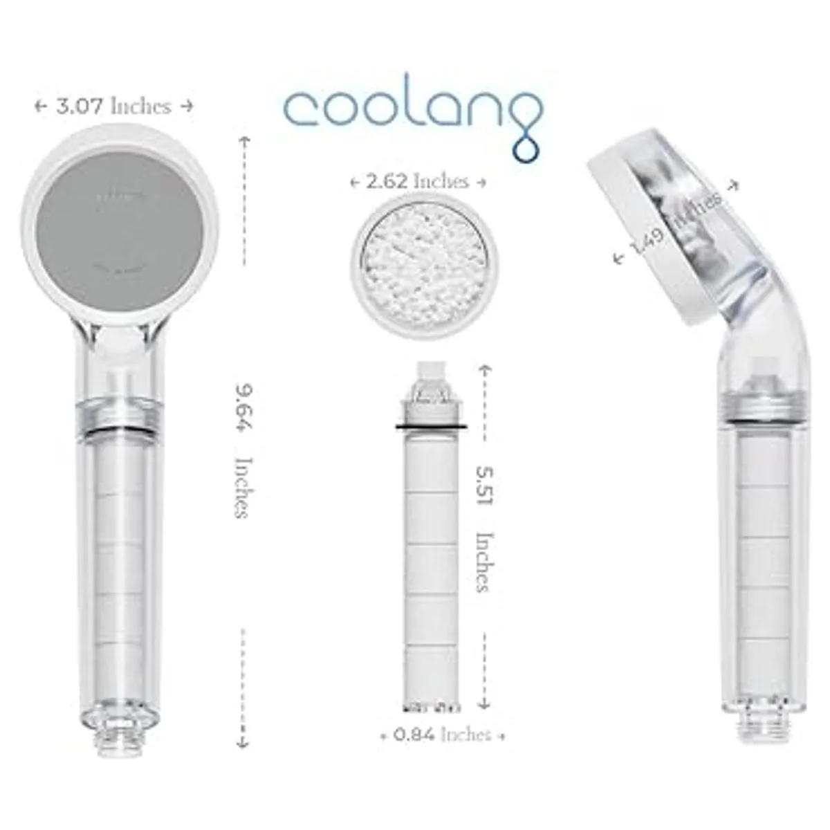 COOLANG Un cabezal de ducha de alta presión con filtro de sedimentos de doble filtración reemplazable y cartucho de bola de cerámica. El paquete incluye manguera de ducha 59 pulgadas y montaje