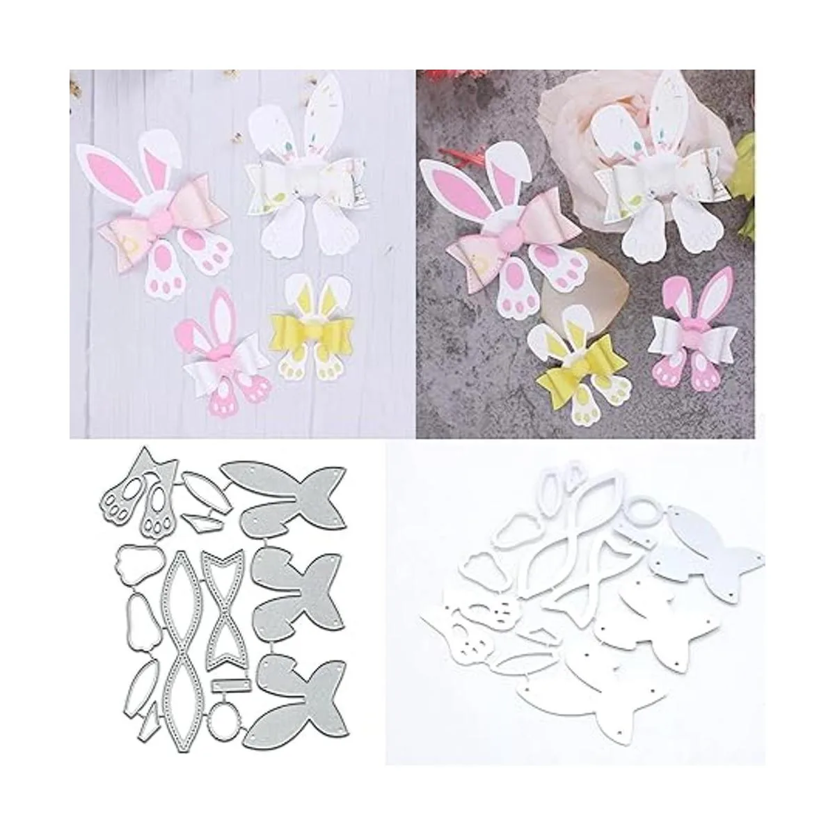 CoolifWang 4 lazos de conejo, troqueles de corte, plantillas de manualidades, lazos de conejo, tarjetas de recortes, plantillas de corte para hacer tarjetas de repujado de bricolaje, troqueles de papel decorativos, álbumes de recortes
