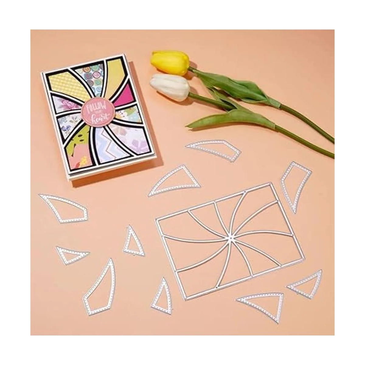 Patrón: formas de marco cosidas, tamaño: 5.5 x 3.9 in aproximadamente, marco de pinwheel cosido, plantillas cortadas para álbumes de recortes, álbumes de fotos, troqueles decorativos para álbumes de recortes, suministros de fabricación de tarjetas.