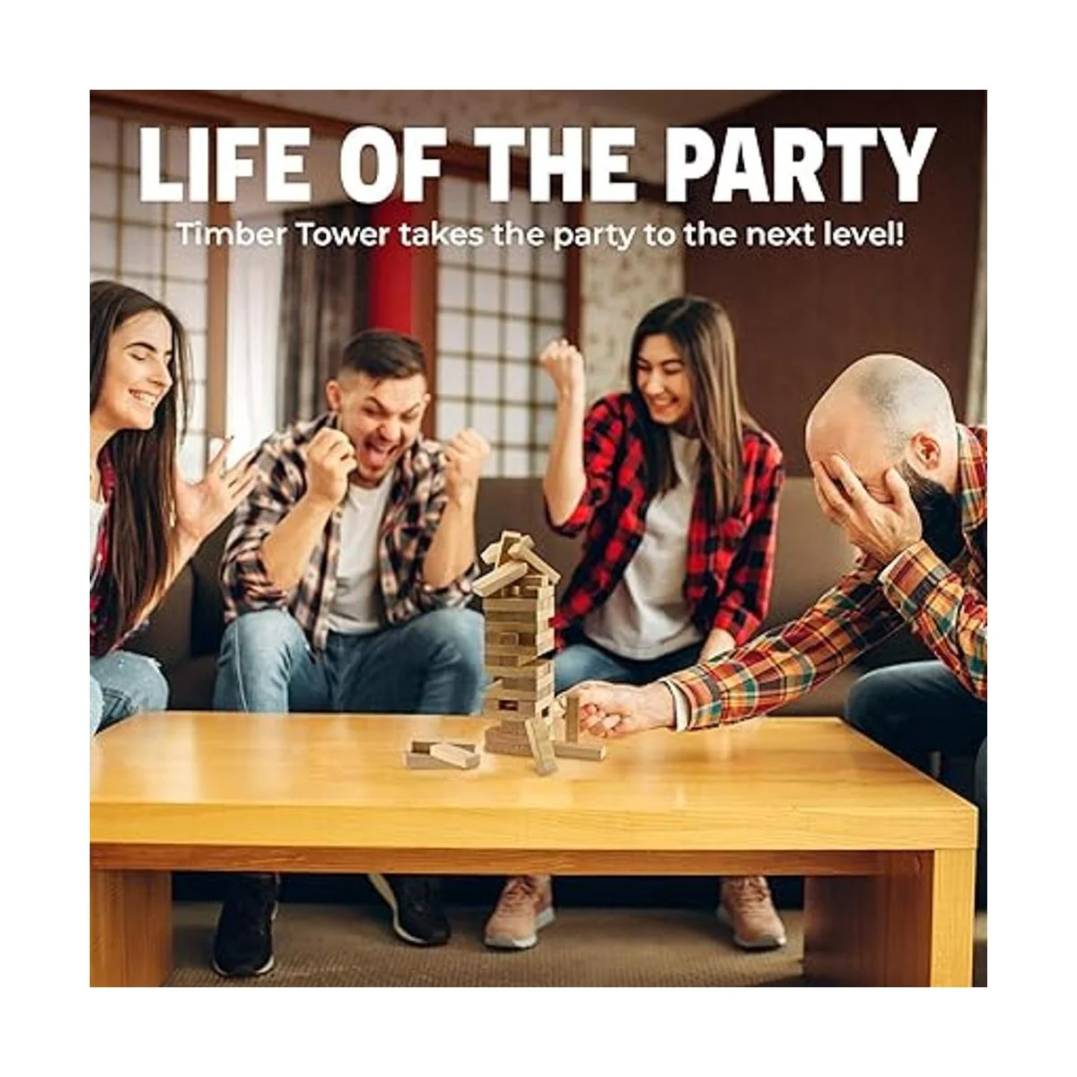 Construir la torre de madera con bloques de cuatro por capa en transversalmente, incluye 60 bloques de 15 capas. ideal para uno o dos jugadores, o más. tomar turnos rodar el dado y quitar un bloque que coincide con el color de los dados de la parte inferior o centro de la torre con una sola mano el ganador es el último para quitar un bloque sin la torre se caiga hacia abajo.