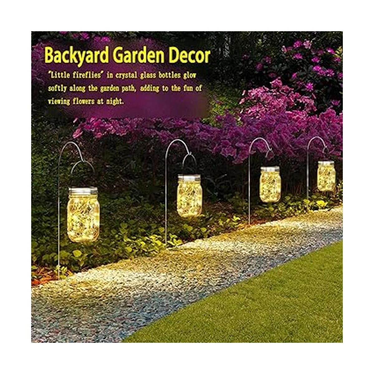 Perfecto para decoración de jardín Puedes colgar en el camino del jardín con un gancho de pastor o colgar de una valla de jardín. por la noche, luces como estrellas en la Vía Láctea. Los árboles, las flores y la hierba están llenos de vida bajo la luz de las estrellas, al igual que los efectos especiales brillantes en la cámara de belleza, haciendo que tu jardín sea más vivo y hermoso. La junta tórica impermeable con tecnología patentada Cooo protegerá el chip en el tarro de la erosión de la lluvia al aire libre, lo que permite que las linternas solares Cooo duren de 3 a 6 meses más que cualquier otra marca.