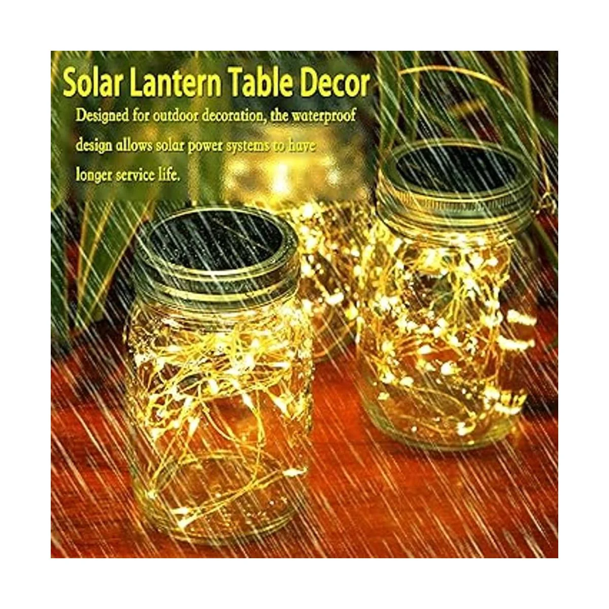 Perfecto para decoración de patio Pon linternas solares hechas de cristal en patios, serán obras de arte. Y cuando el sol brilla, estas luces solares respetuosas con el medio ambiente almacenarán automáticamente la energía del sol. El cielo comienza a oscurecerse después de ver el resplandor de la puesta de sol con familiares y amigos, su chip de detección de luz integrado despertará las 30 piezas brillantes para dormir en el frasco. Obtendrá miradas de admiración de un amigo, por tu buen comportamiento ambiental.