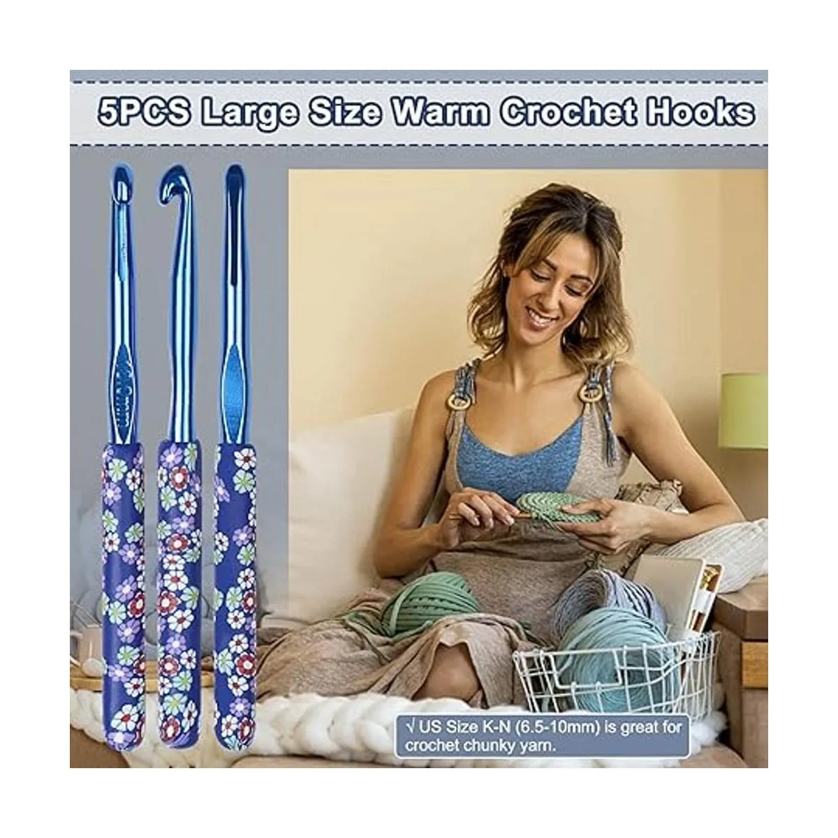 Ganchos de ganchillo cálidos de gran tamaño para ganchillo Los ganchos de ganchillo cálidos de tamaño grande son una continuación de la serie de ganchos de ganchillo cálidos para principiantes. Es una expansión de la primera generación de ganchos de ganchillo cálidos en respuesta a los requisitos de muchos clientes. Por lo tanto, este juego de ganchillo tiene 5 diferentes kits de ganchillo grandes para principiantes: K0.256 in, 0.276 in, L0.315 in, M0.354 in, N0.394 in