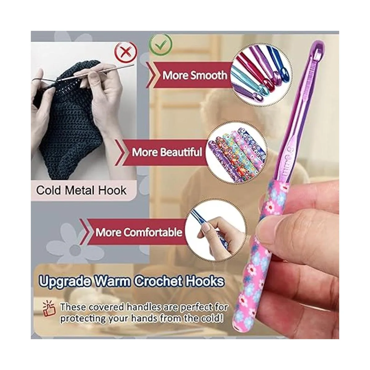 Ganchos de ganchillo cálidos y ergonómicos, agarre suave ideal para agarre Nuestro mango de ganchillo está hecho de material duradero y suave, bien hecho y resistente, para evitar el contacto entre la palma de tu mano y el gancho de ganchillo frío durante el proceso de ganchillo, mientras que te da un buen agarre. Te permite disfrutar más del proyecto de ganchillo con ganchos de ganchillo ergonómicos cálidos