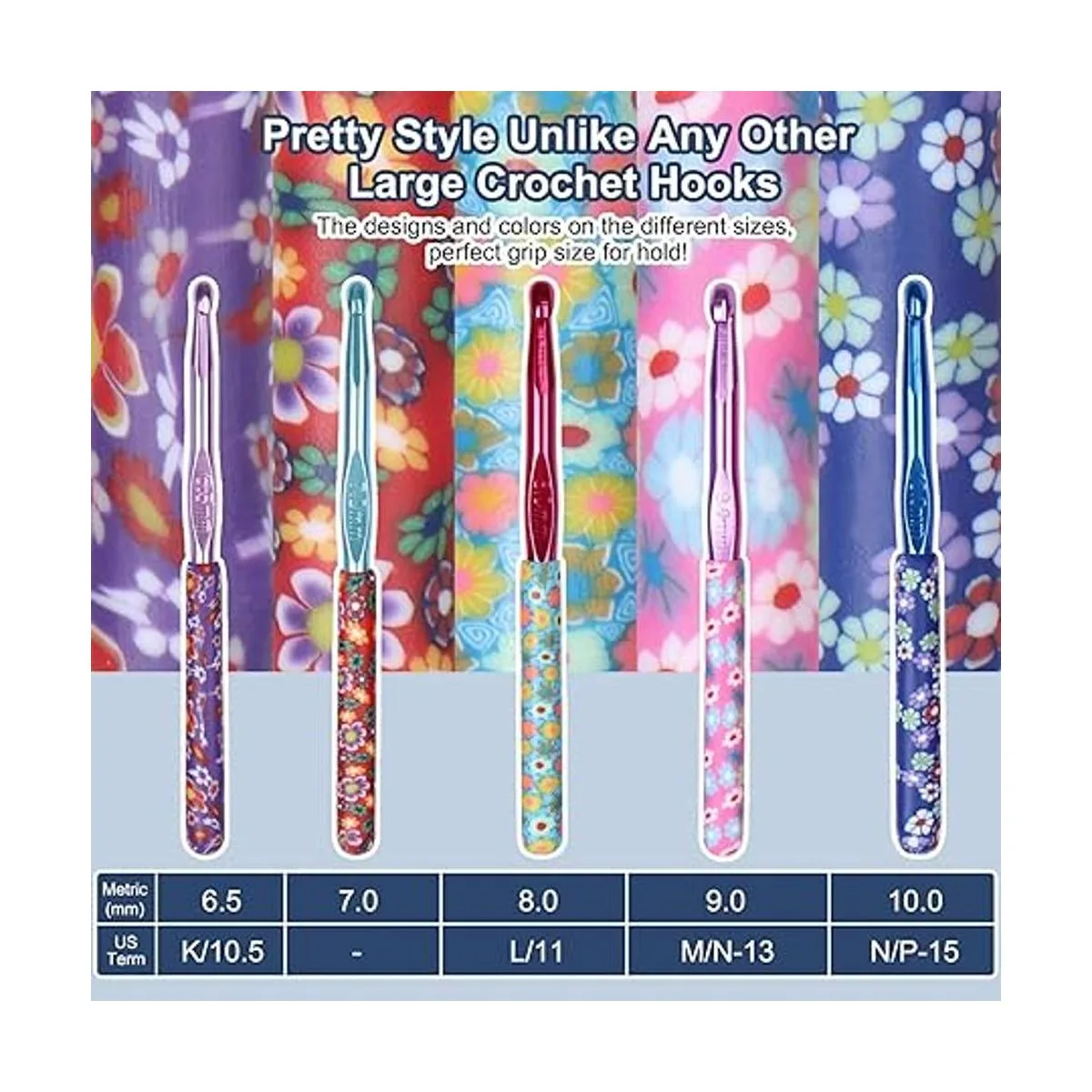 Coopay Ganchos de ganchillo cálidos de gran tamaño para ganchillo, kit de ganchillo de 0.256 in a 0.394 in, juego de gancho de ganchillo, agujas de ganchillo de agarre suave de aluminio para ganchillo, suministros de punto y ganchillo