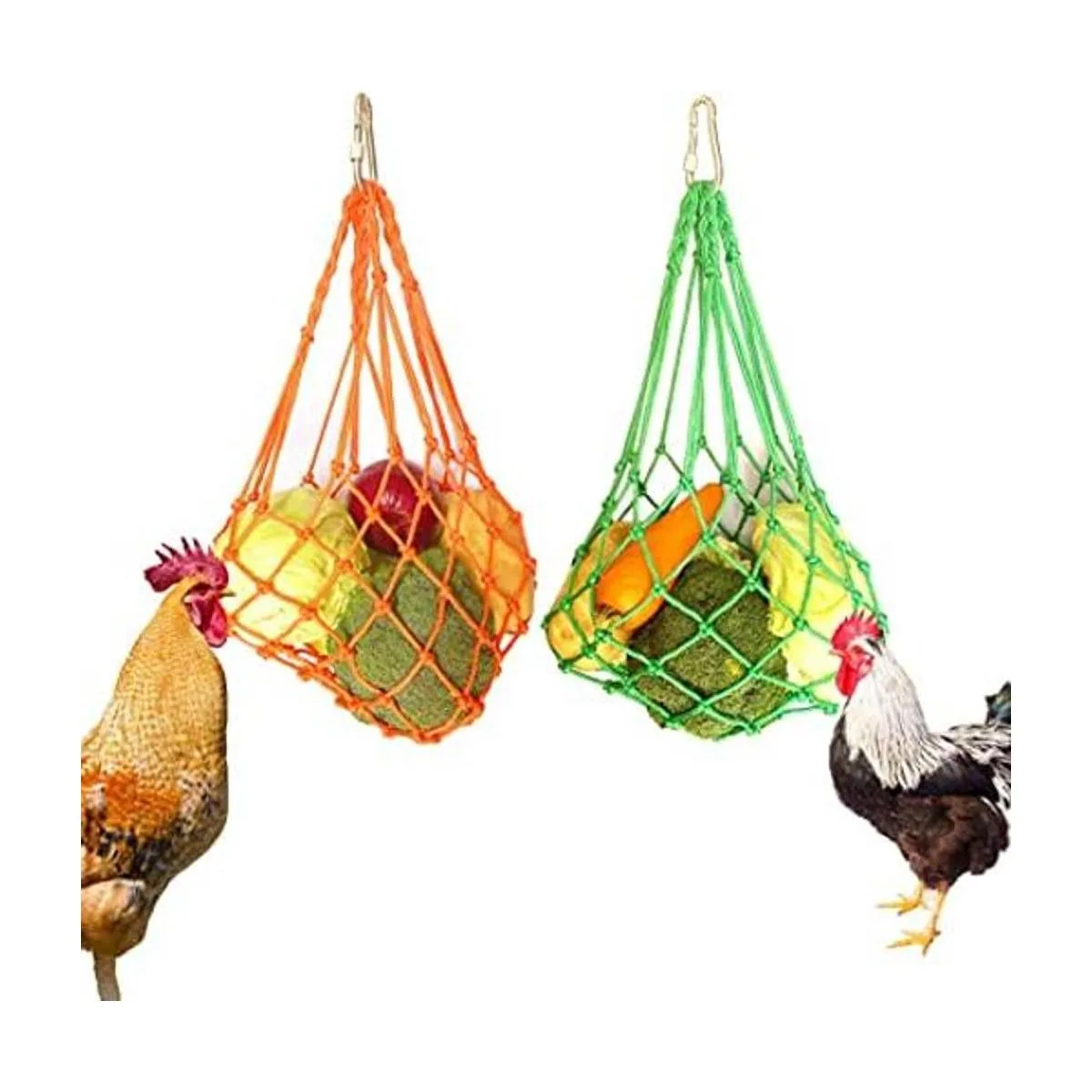 CooShou Bolsa de cuerda de pollo y verduras para aves de corral y fruta, alimentador de pollo, repollo, herramienta de alimentación con gancho para gallinas, gallinero, pato