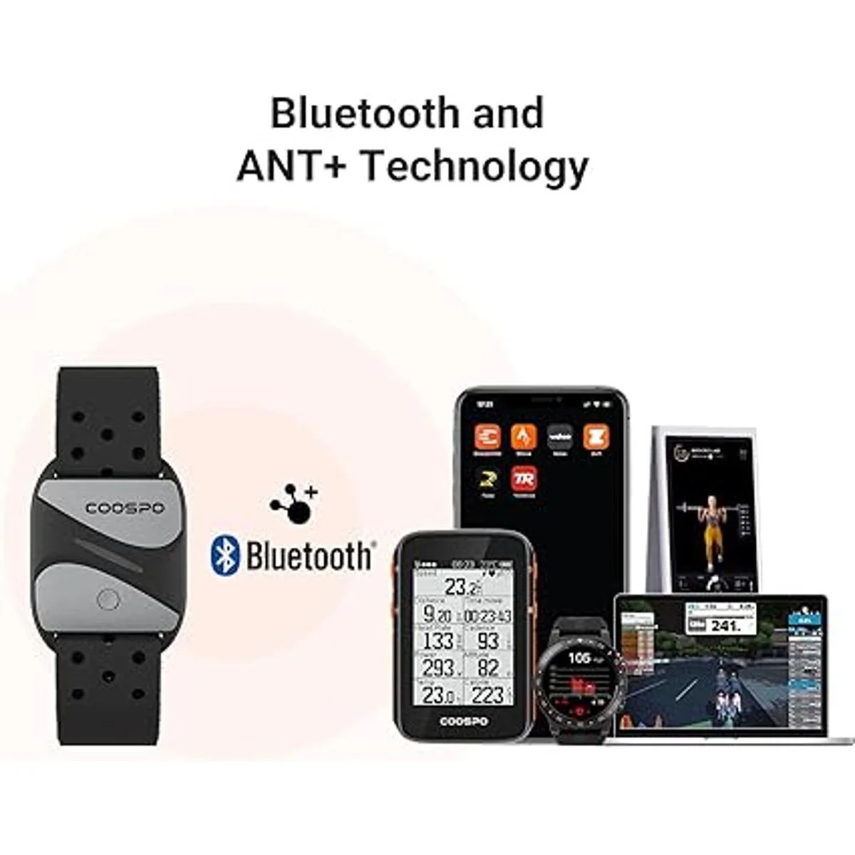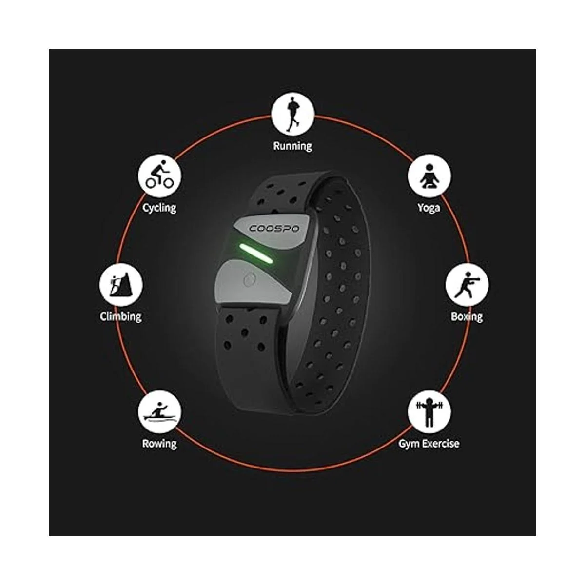 COOSPO Pulsera para monitor de frecuencia cardíaca HW807, Bluetooth 5.0 ANT HRM con indicador LED de zona de recursos humanos, seguimiento de latidos cardíacos HRV para entrenamiento de fitness, trabajo con PelotonPolarWahooStravaZwiftDDP Yoga