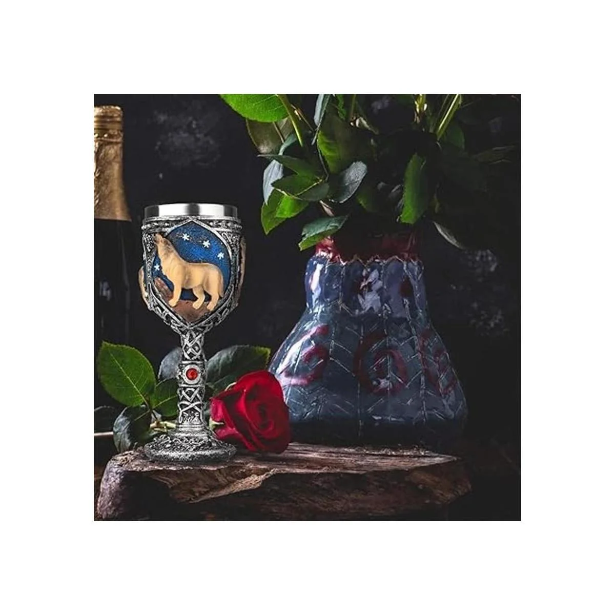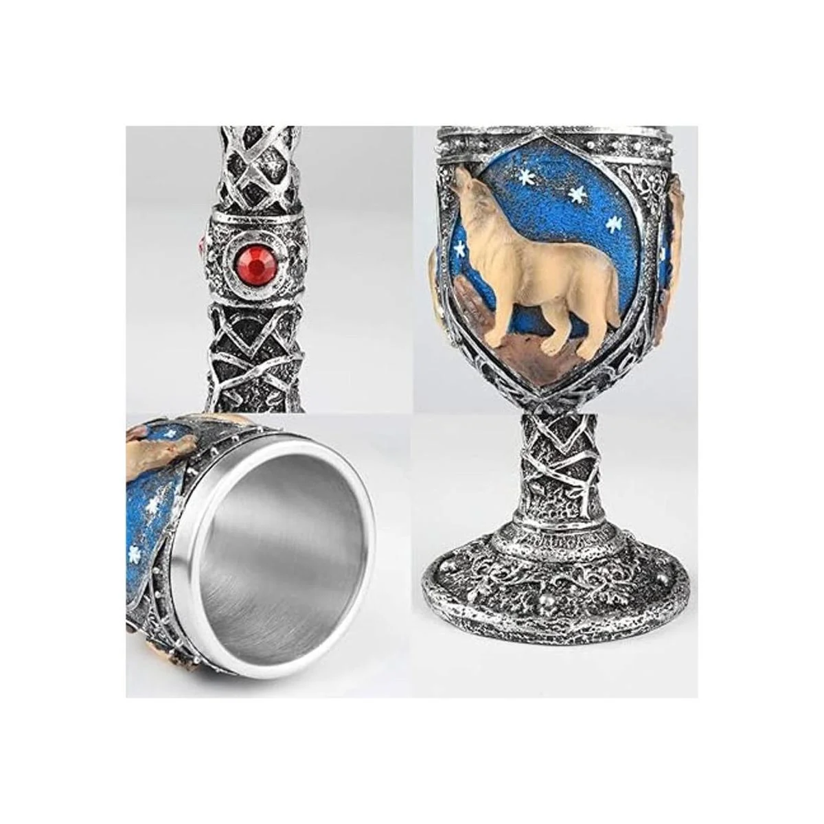 Material de alta calidad: copa de lobo de acero inoxidable hecha de resina y acero inoxidable con diseño creativo de cabeza de lobo realista 3D, lleno de misterio y sensación vintage.