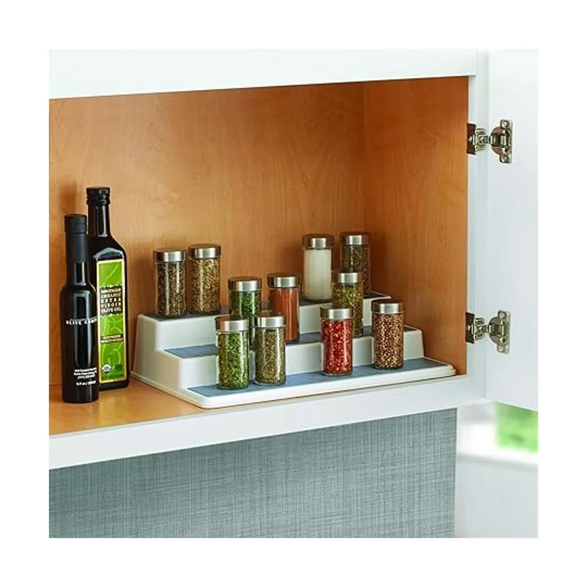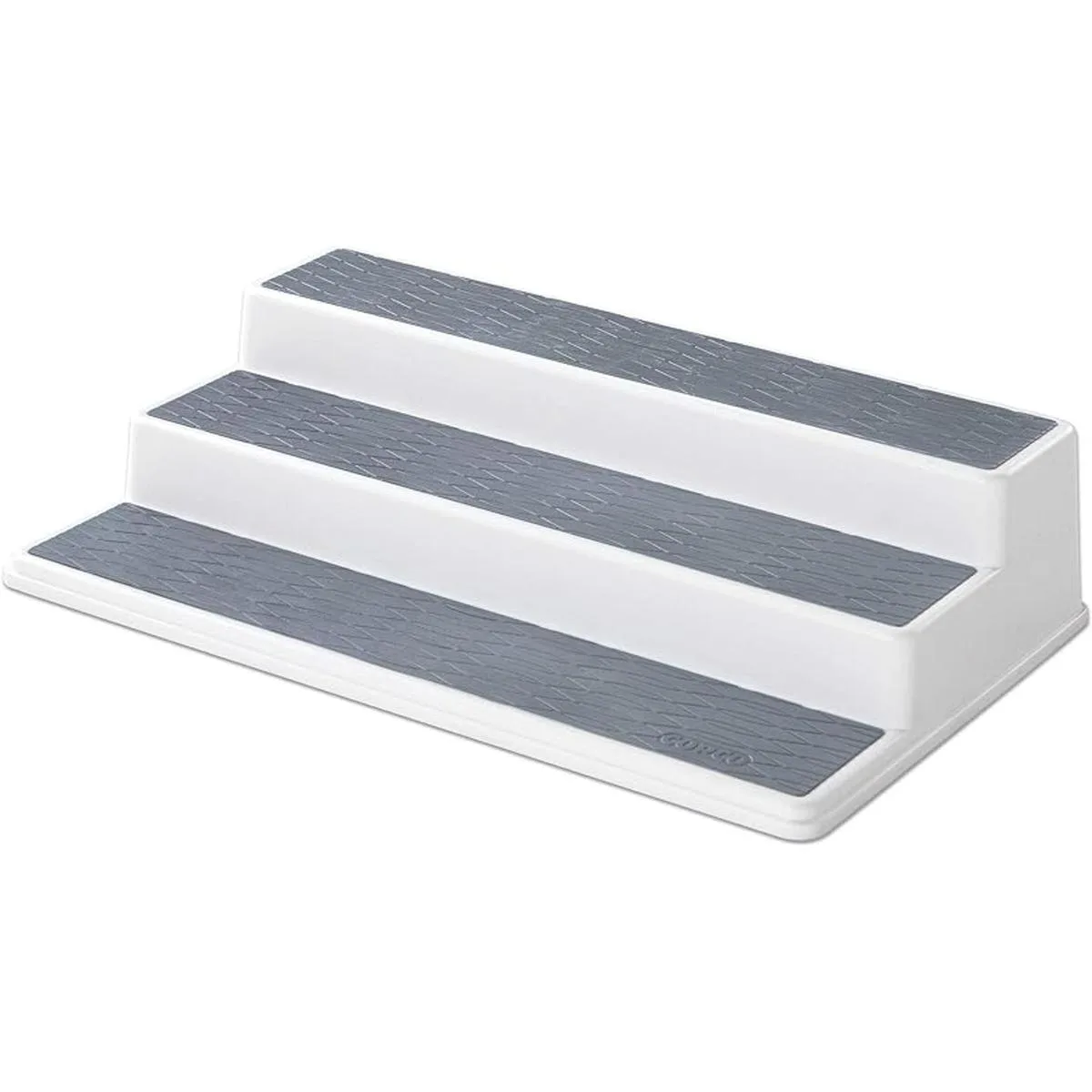 Copco organizador antideslizante de 3 niveles para despensa, para armario de cocina, para especias, de 15 pulgadas, color gris