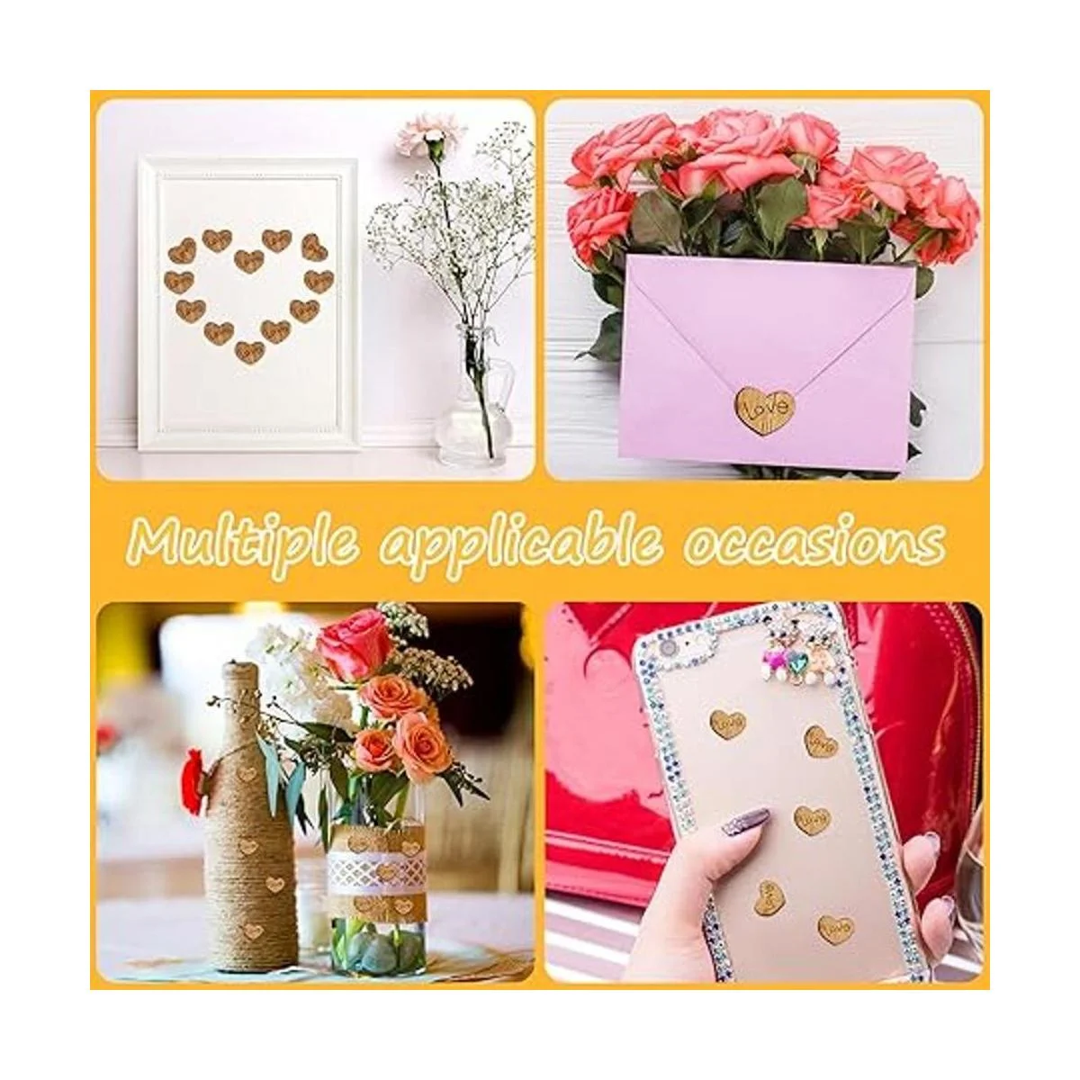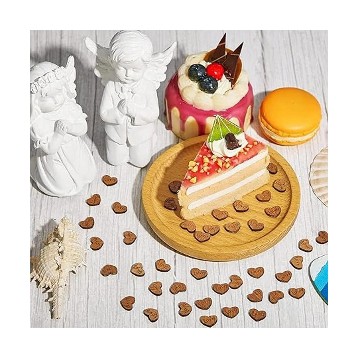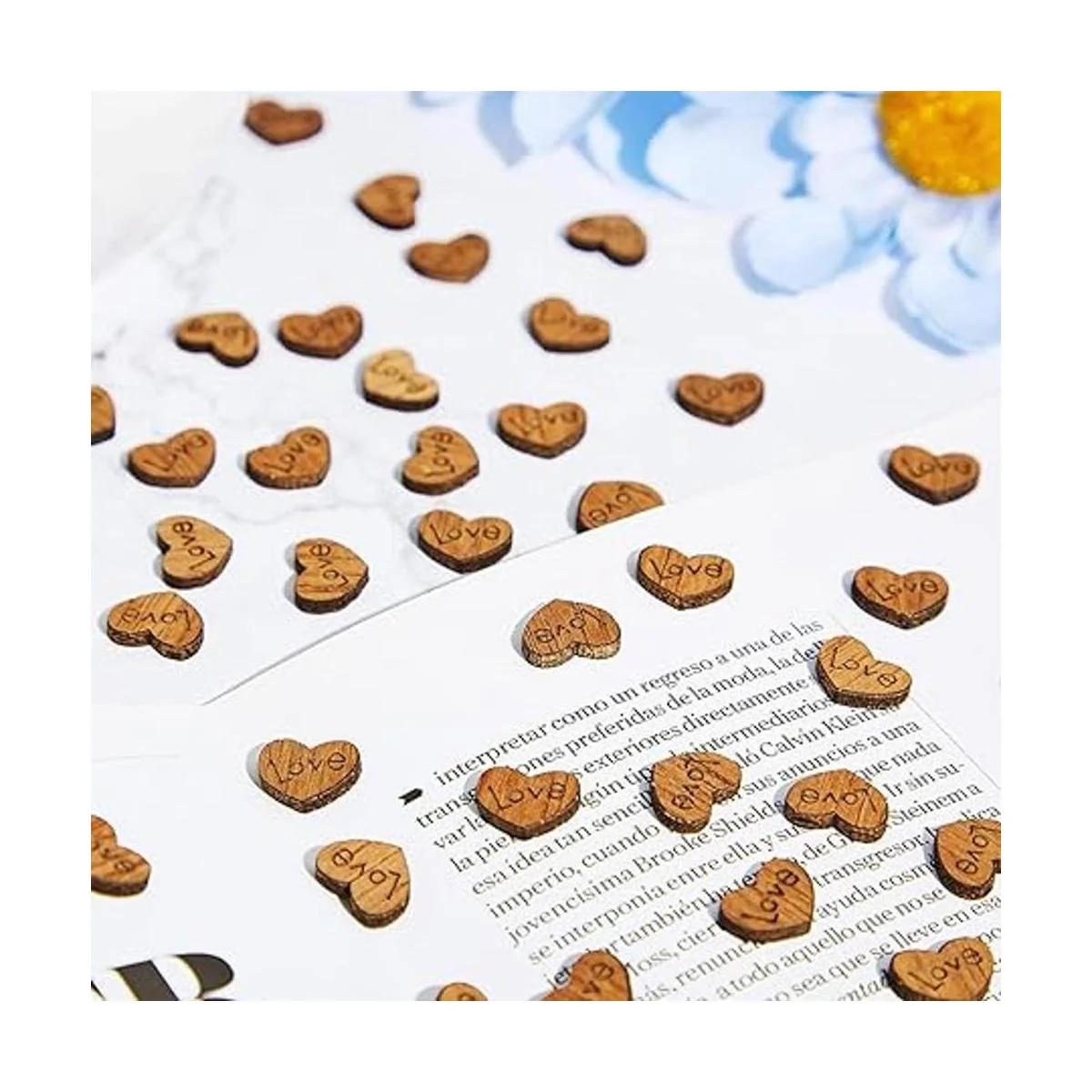 Fácil de usar: nuestras decoraciones de corazones de boda están hechas de material de madera de calidad, que cuenta con una forma pequeña y delicada, superficies lisas y planas sin bordes puntiagudos o rebabas, puedes pegarlas en muchos lugares como decoraciones mediante el uso de pegamento, cinta de doble cara y mucho más