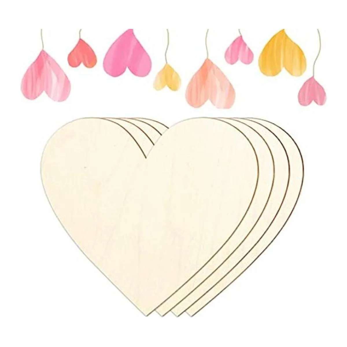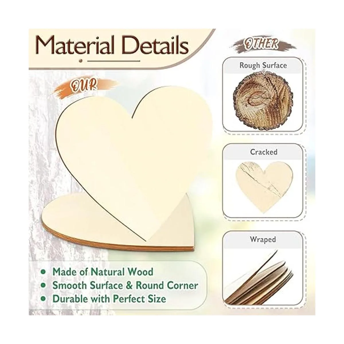 Corazones de madera para manualidades: hechos de madera contrachapada de álamo de alta calidad, que es sólida, resistente, ecológica y ligera. Cada rebanada es cuidadosamente seleccionada para garantizar que esté plana. Cantidad suficiente para tus manualidades, San Valentín y decoración de boda.