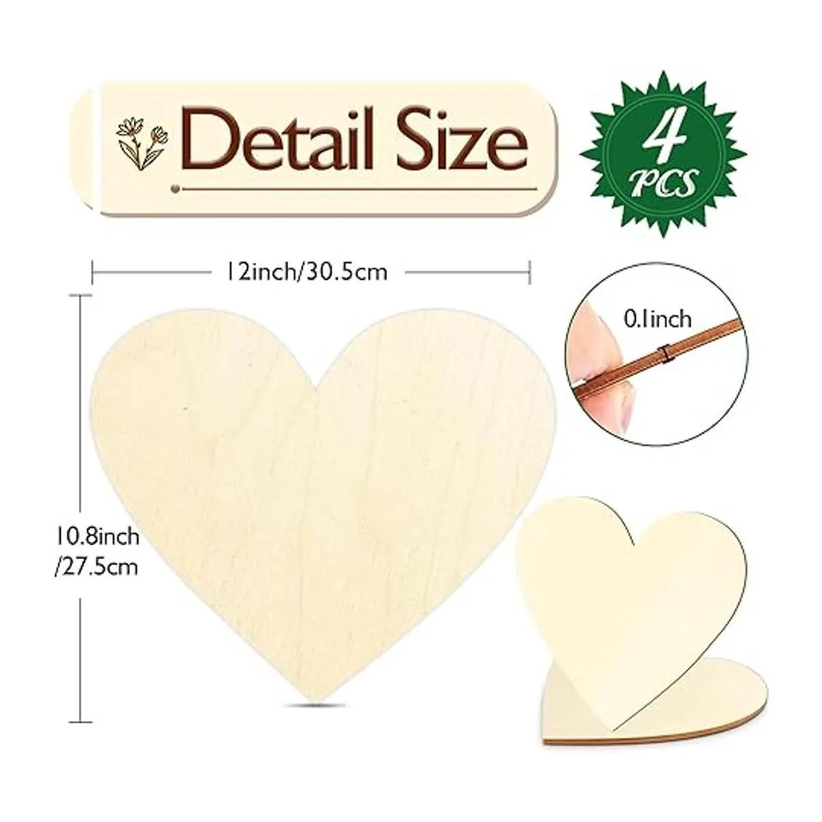 Corazones de madera para manualidades, 12 pulgadas, paquete de 4 adornos de madera en blanco para manualidades, recortes de madera sin terminar para manualidades, corazones de San Valentín, cosas de madera para pintar