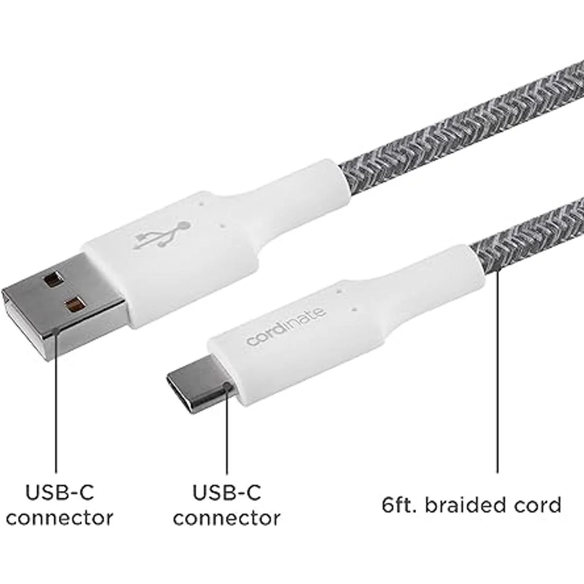 Cordinate Cable trenzado USBA a USBC, carga rápida, duradero, compatible con iPad Pro, MacBook Pro, Samsung Galaxy S21S10S9Plus, Google Pixel 5C32XL, blancogris, 1 unidad, 58652