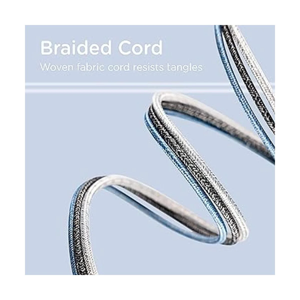 Cable trenzado de alta calidad extra largo de 5.9 ft. El cable de tela tejida resiste enredos y te permite alimentar desde una distancia