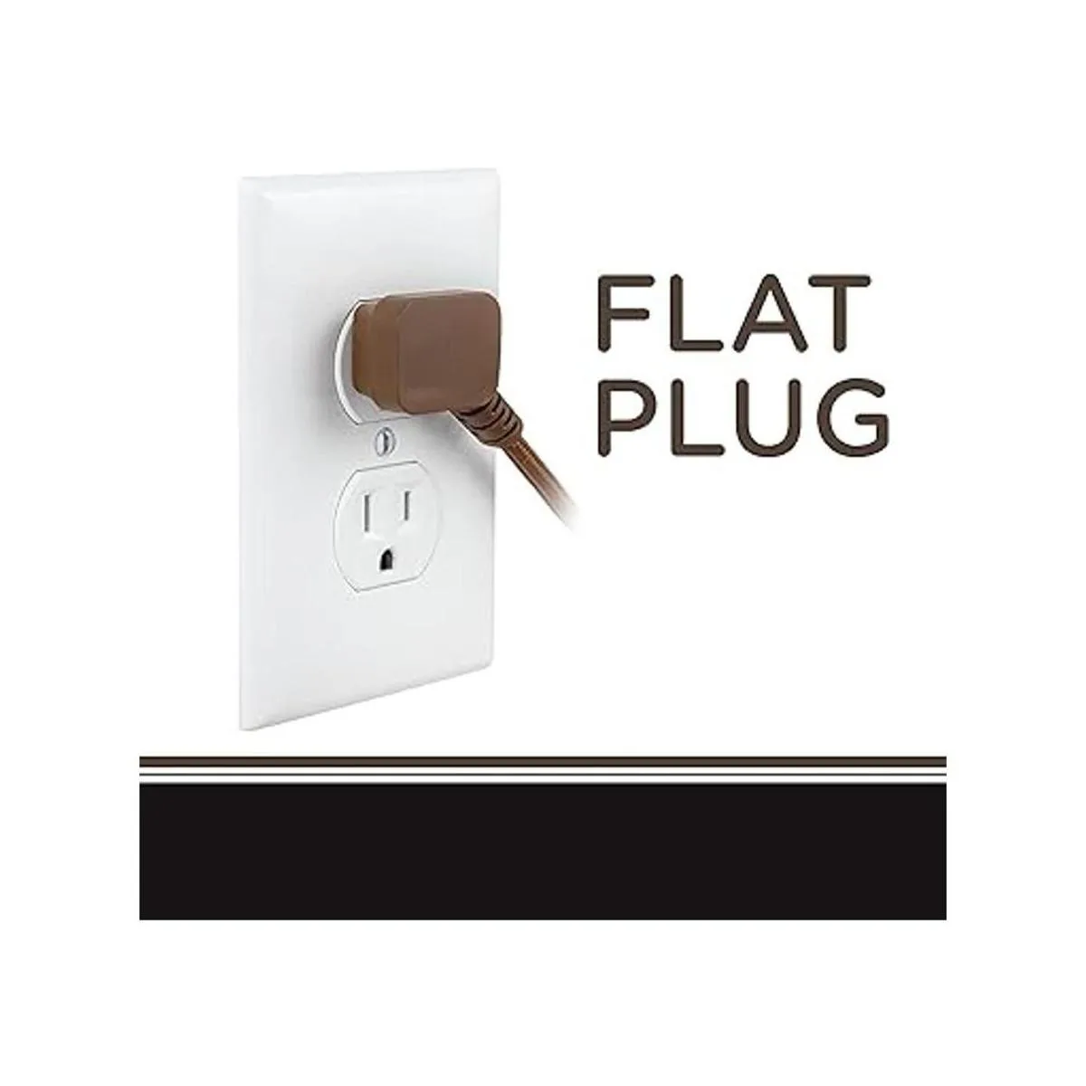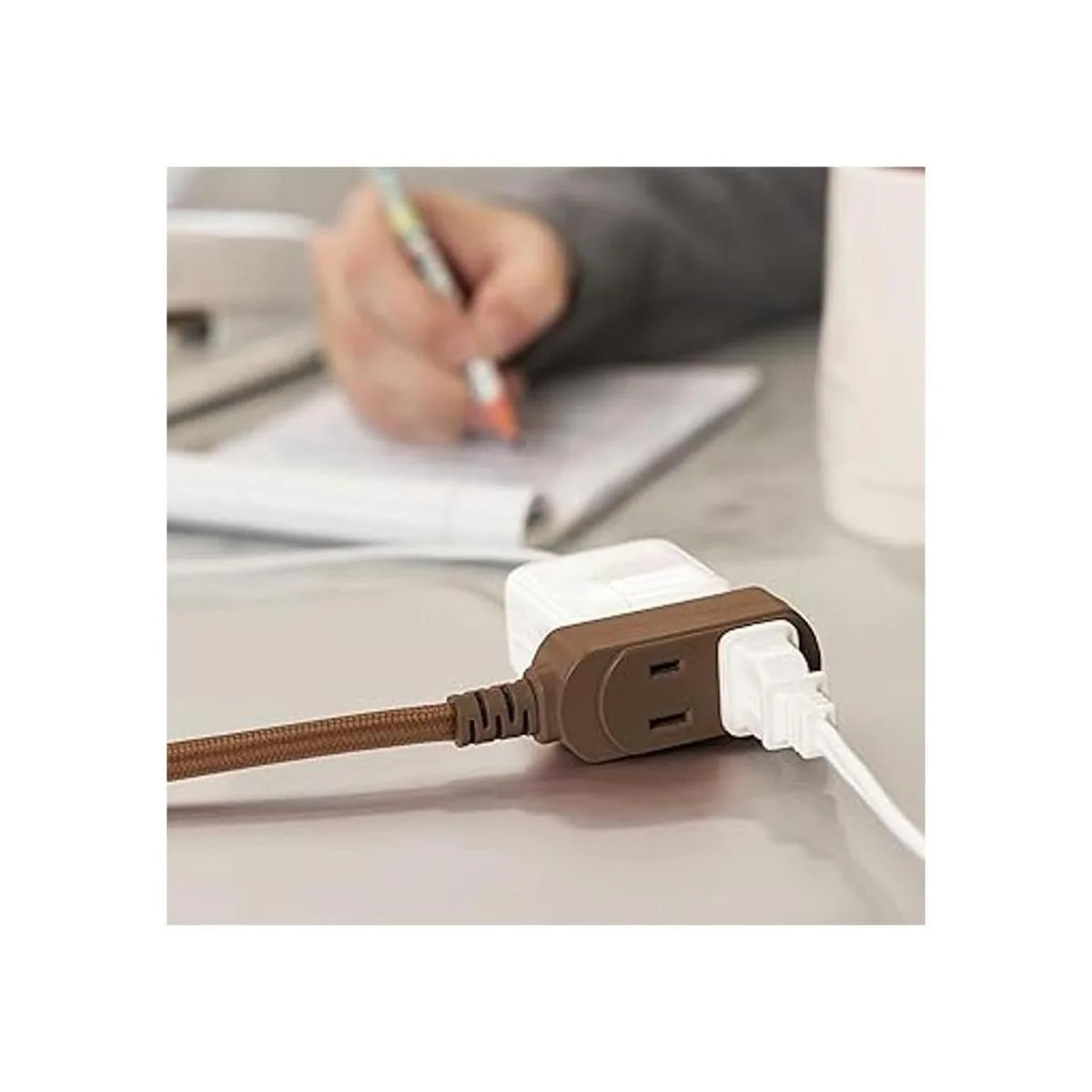 Cordinate Designer 39982 Cable de extensión de 3 tomas, tira de alimentación de 2 puntas, cable extralargo de 8 pies con enchufe plano, cable trenzado de tela de patrón de cheurón, enchufes de seguridad deslizantes para cerrar, color marrón sólido