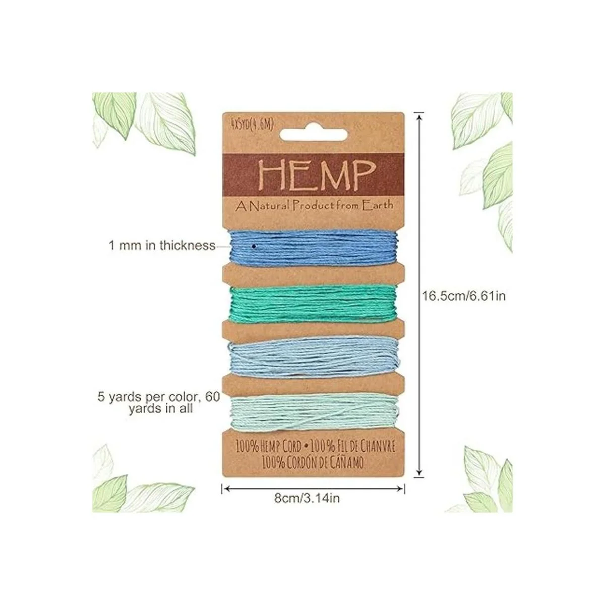 Contenido del paquete: recibirás 4 juegos de cuerdas de hilo de yute, cada juego tiene 4 colores, 5 yardas para cada color, 80 yardas de longitud total, y el grosor de cada cable es de aproximadamente 0.039 in; cantidad suficiente y colores para adaptarse a diferentes requisitos de manualidades