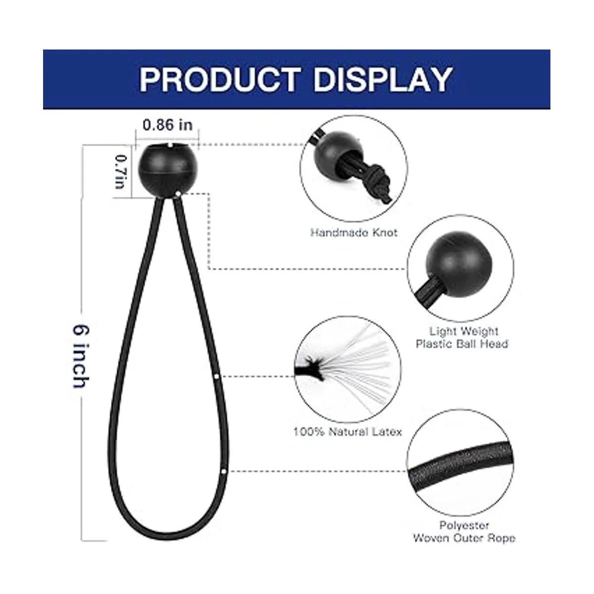 Cordones elásticos de bola de 6 pulgadas con bolas, 50 bolas de cuerda de Bungie resistentes para toldo, lona de amarre para campamento, refugio, carga, postes de tienda de campaña resistentes a los rayos UV