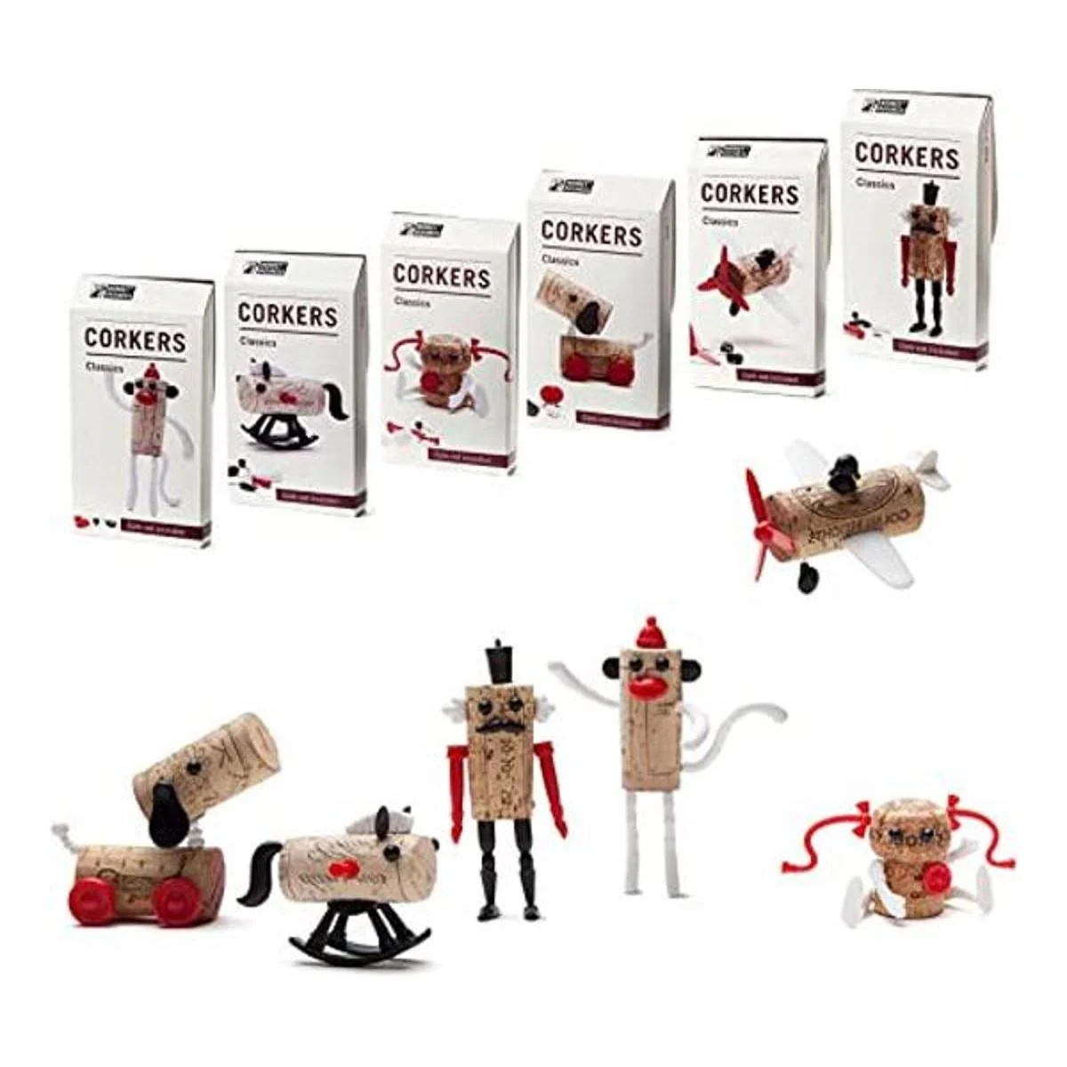Corkers Classic Toys Accesorios de vino, regalo novedoso, paquete de 6 piezas de manualidades diferentes para corchos, por Monkey Business