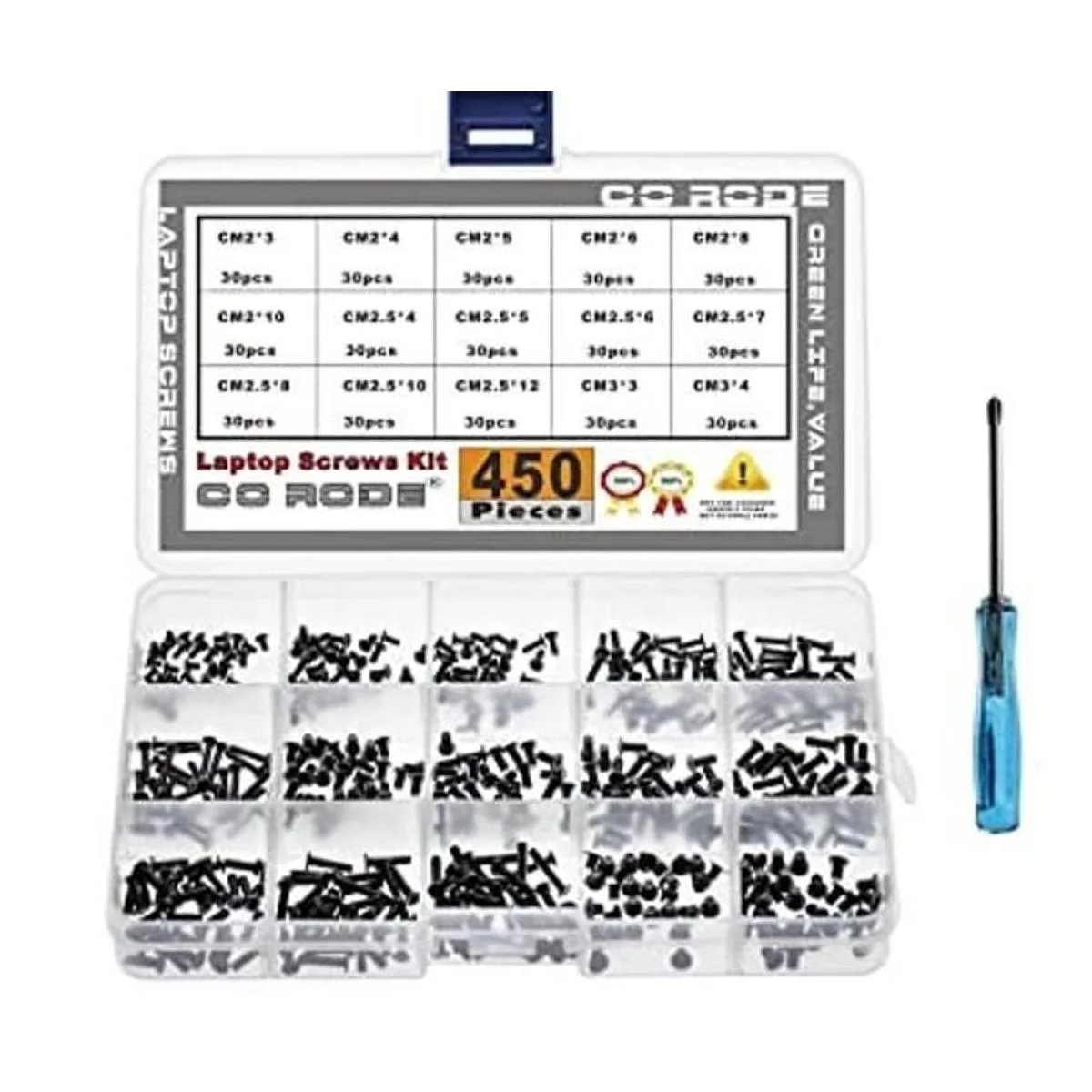 Kit de tornillos para laptop de alta calidad, 450 piezas con 15 tamaños diferentes.