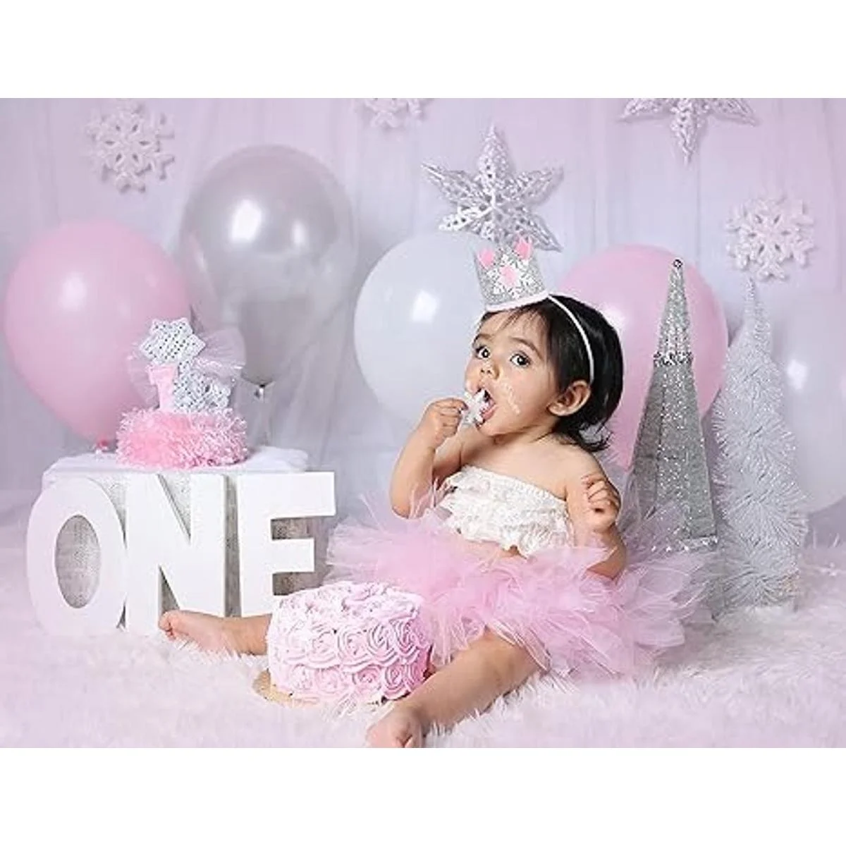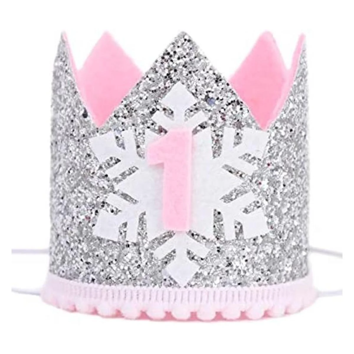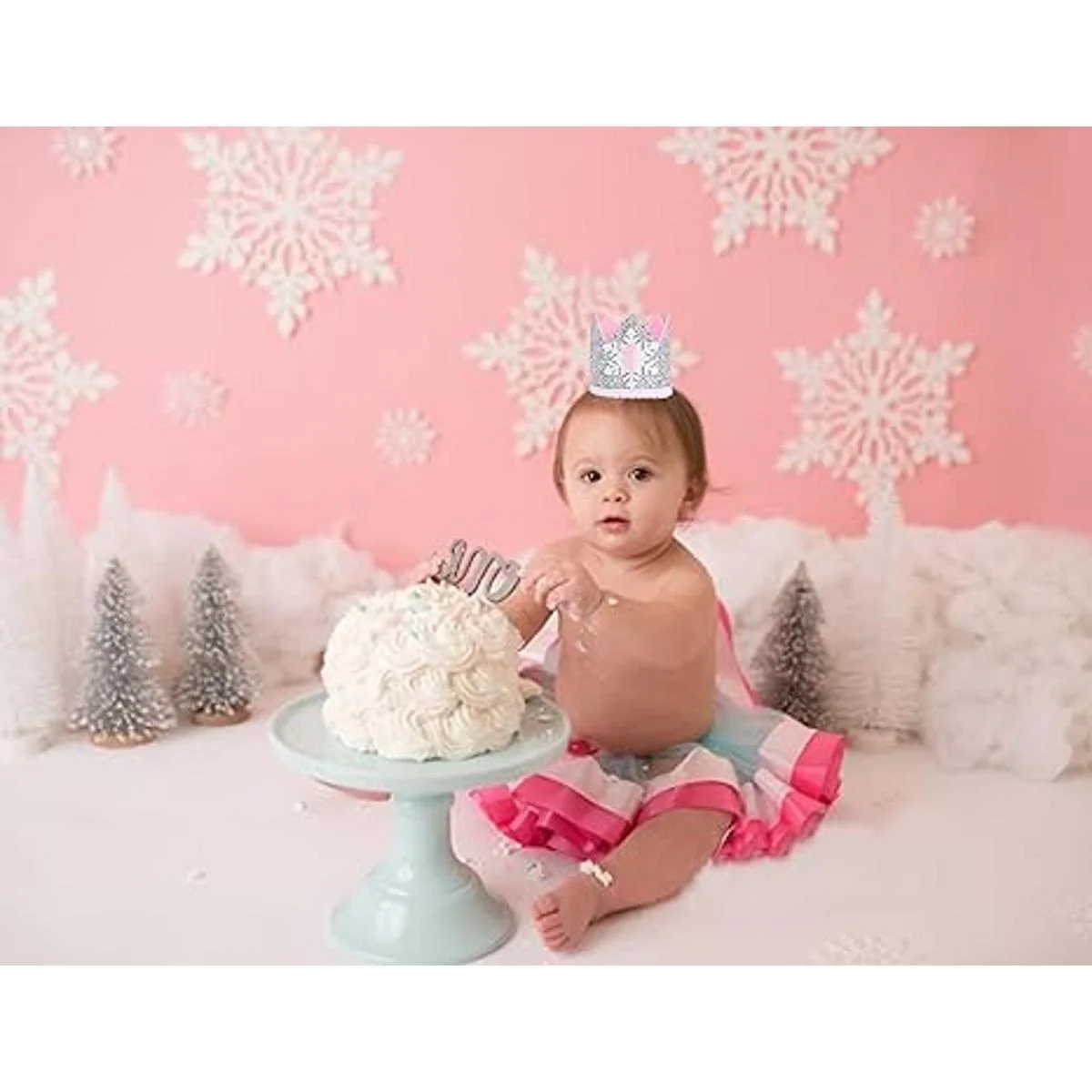 Corona de copo de nieve para el primer cumpleaños para niñas Decoración de fiesta de primer cumpleaños de invierno Onederland, corona de cumpleaños plateada y rosa, tiara de cumpleaños, sombrero de primer cumpleaños para niñas, accesorios para fotos de pastel