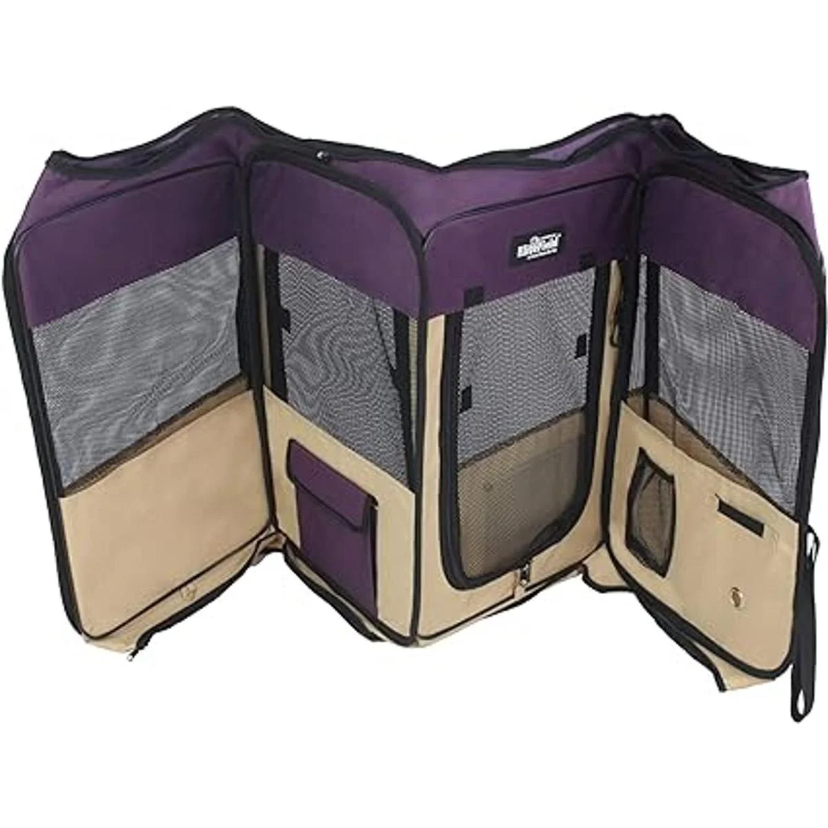 Dos puertas con cremalleras de bloqueo para la seguridad; Dos bolsillos para accesorios y un bolsillo para botella de agua y soporte en la mascota para parque de juegos