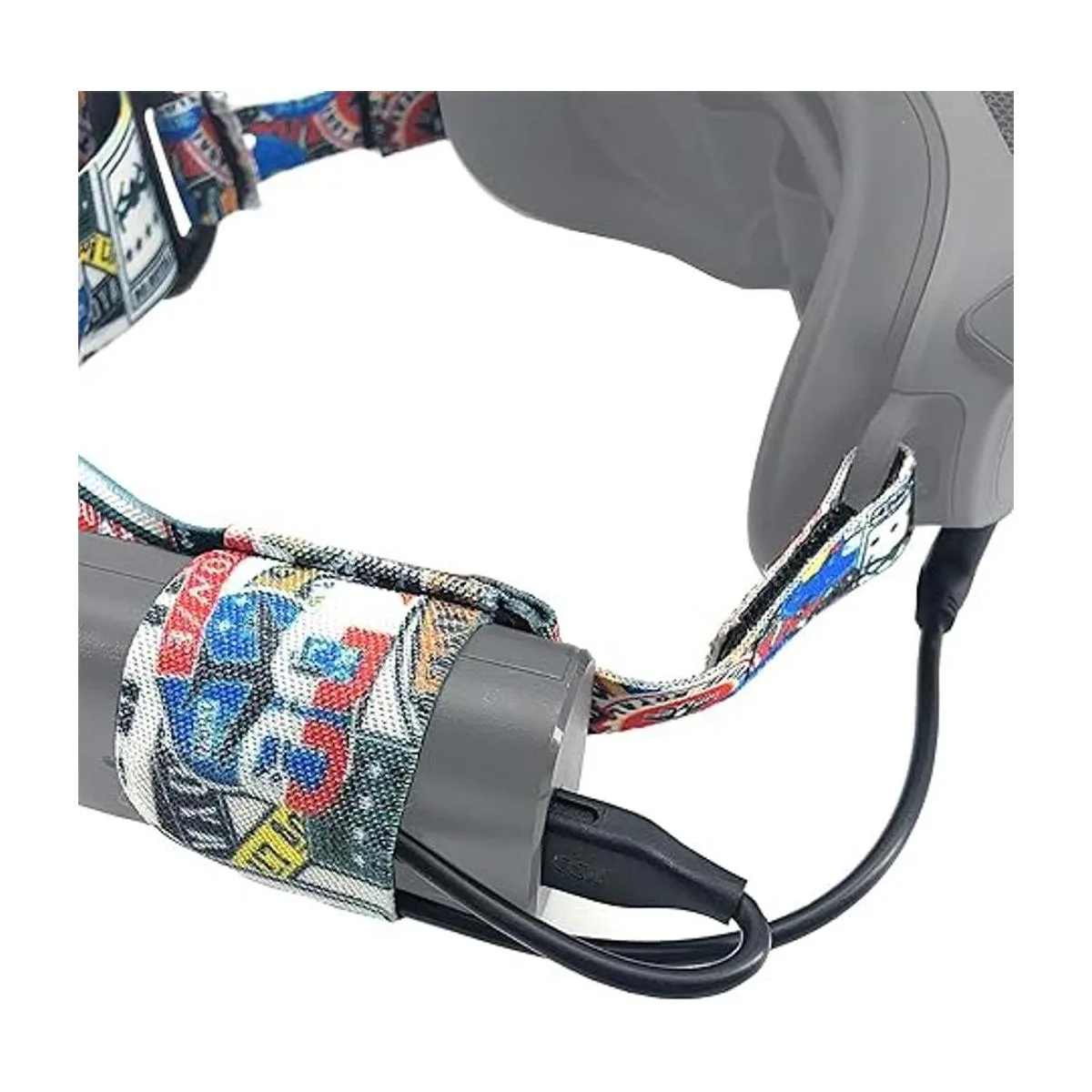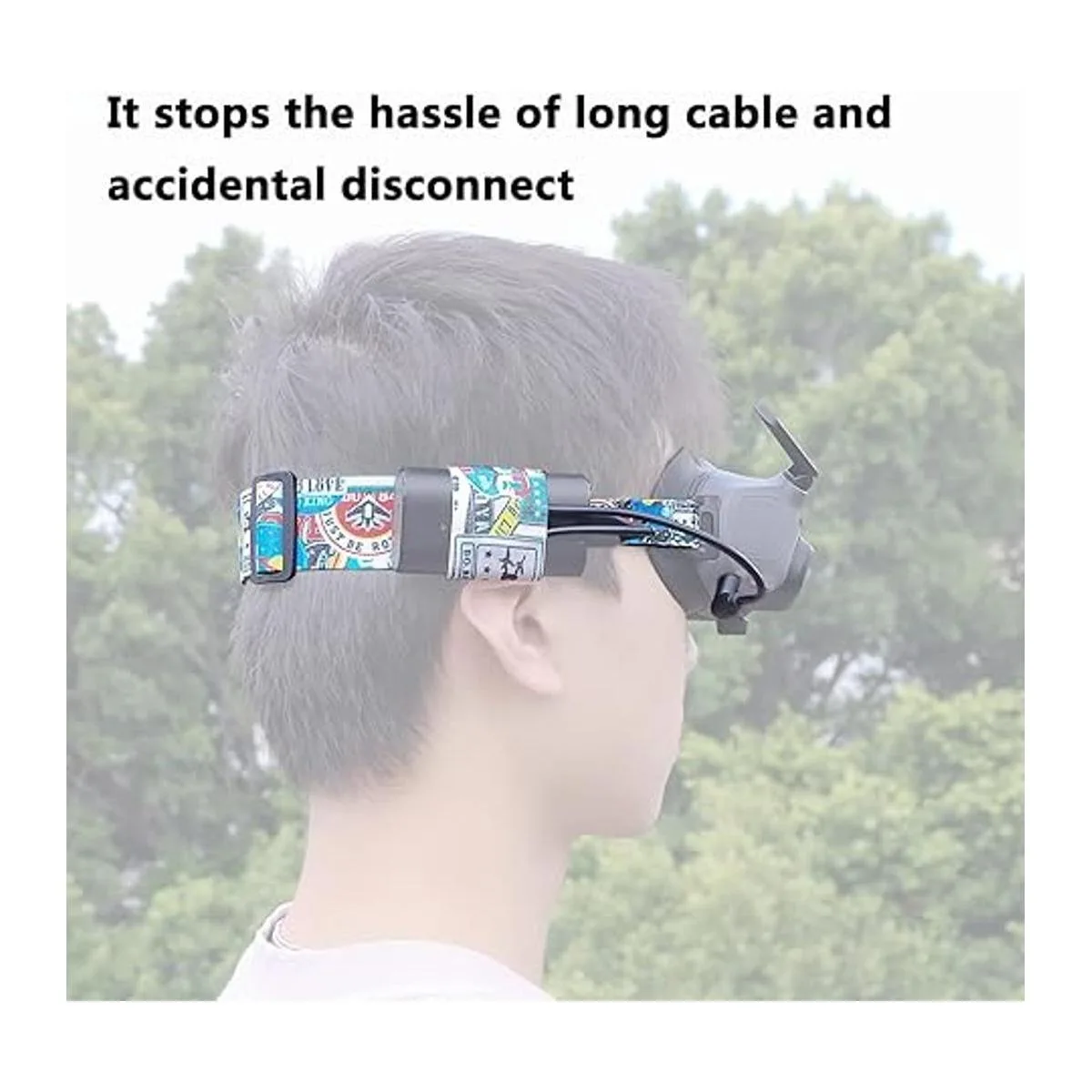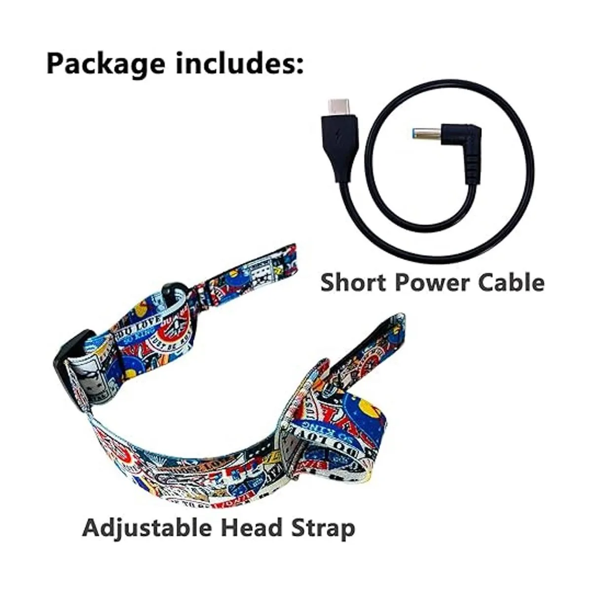 Ultraportátil Una banda elástica en el lateral de la correa para la cabeza y un cable de alimentación corto de 11.8 in, banda elástica puede sujetar tu batería en la correa de la cabeza, luego el cable de alimentación corto conecta tu batería con gafas 2, ambos serán la solución perfecta para solucionar el problema de colgar cables de piezas originales, evita arrastres y caídas.