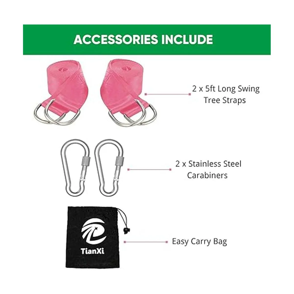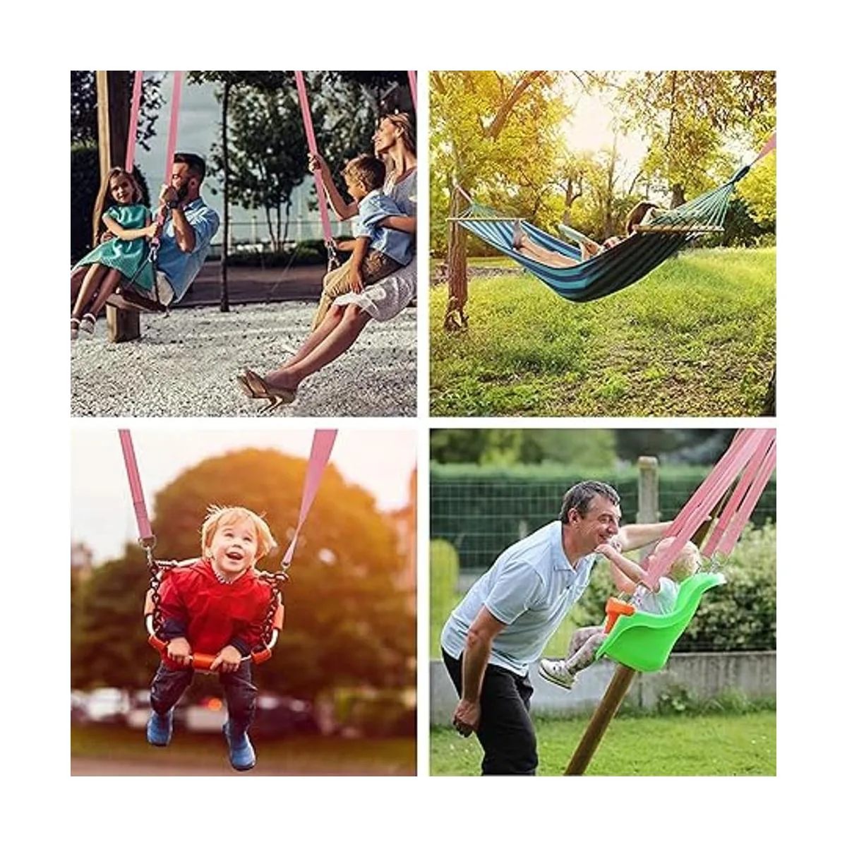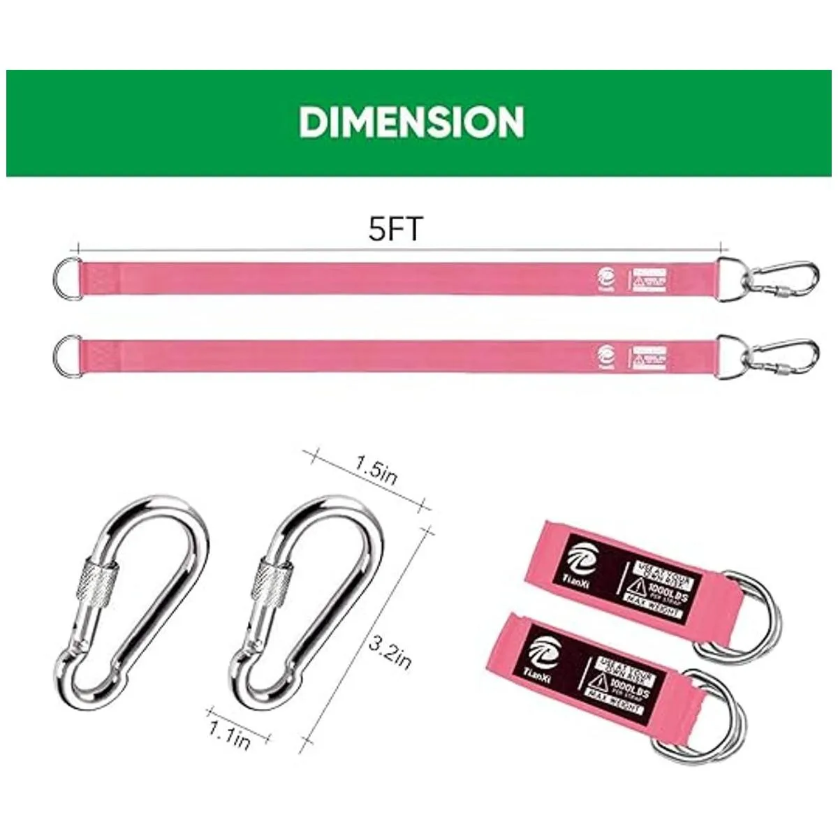 Correa colgante para árbol Correas de columpio de 4.9 ft para colgar al aire libre, kit de accesorios de suspensión, capacidad para 2200 libras con mosquetones de acero inoxidable, fácil instalación, perfecto para bebéjardíncolumpio infantil rosa