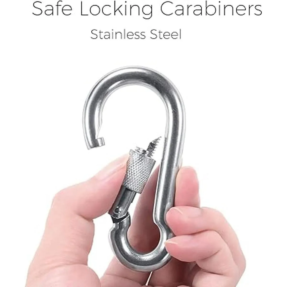 Capacidad de 220.5 lbs Nuestra correa colgante de árbol con mosquetones de acero inoxidable puede contener hasta 220.5 lbs con facilidad. Estas correas de accesorios de suspensión para hamacas son fáciles y seguras para traer toda esa diversión a tu patio trasero, al aire libre