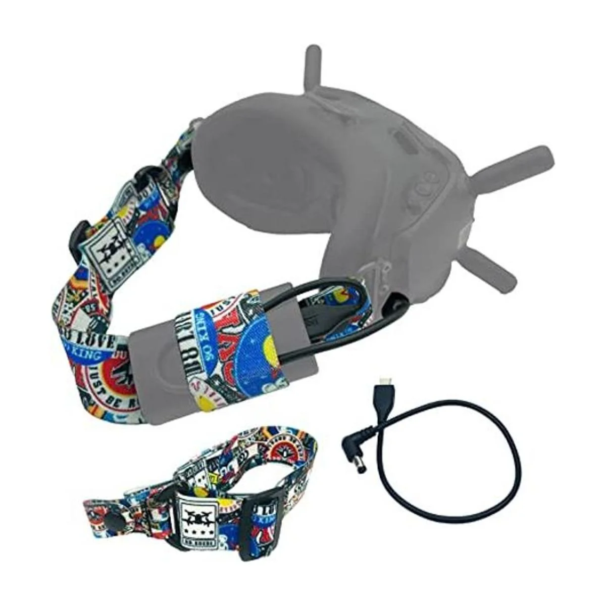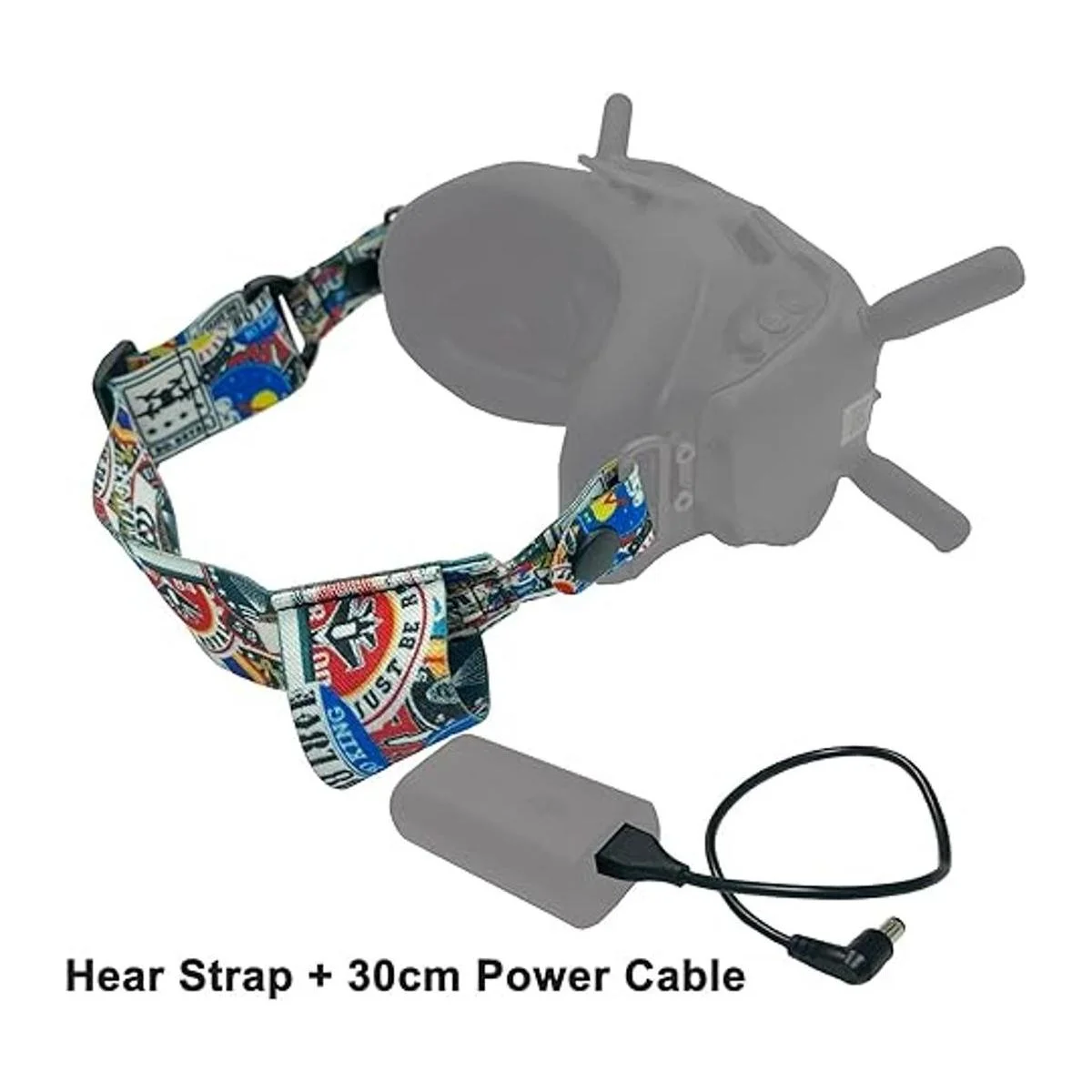 Correa de cabeza ajustable y cable de alimentación de 11.8 in para gafas DJI FPV V2, cable de carga de alimentación y correa de diadema con bolsillo para batería para DJI FPV Combo no para gafas Avata 2.