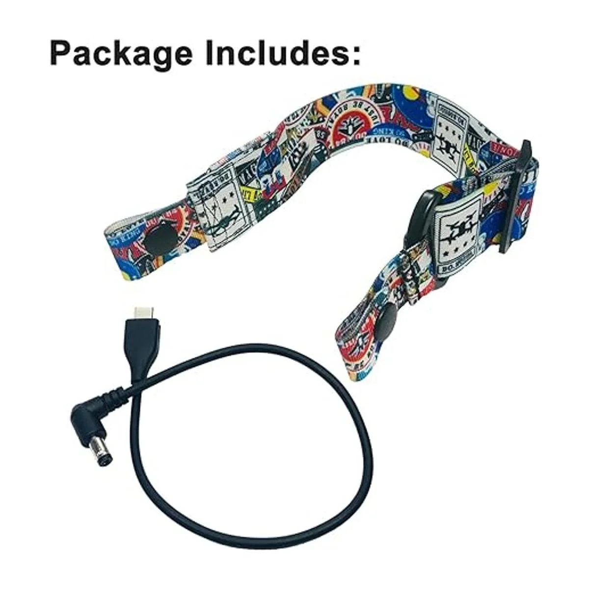 Ultraportátil Una banda elástica en el lateral de la correa para la cabeza y un cable de alimentación corto de 11.8 in, banda elástica puede sujetar tu batería en la correa de la cabeza, luego el cable de alimentación corto conecta tu batería con gafas V2, ambos serán la solución perfecta para solucionar el problema de colgar cables de piezas originales, evita arrastres y caídas.