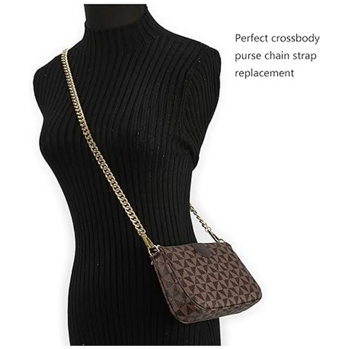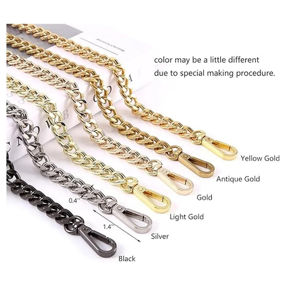 Correa de cadena cruzada de metal ligero de 47 pulgadas para bolso de mano dorado