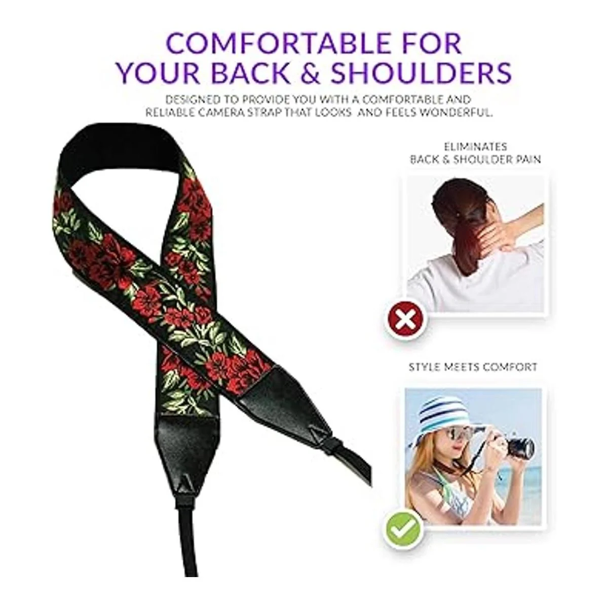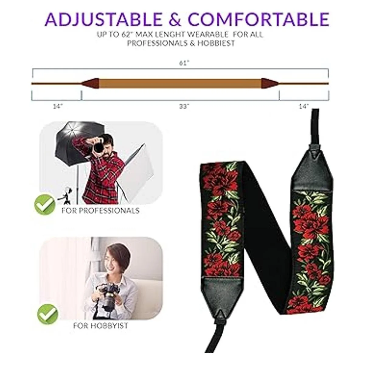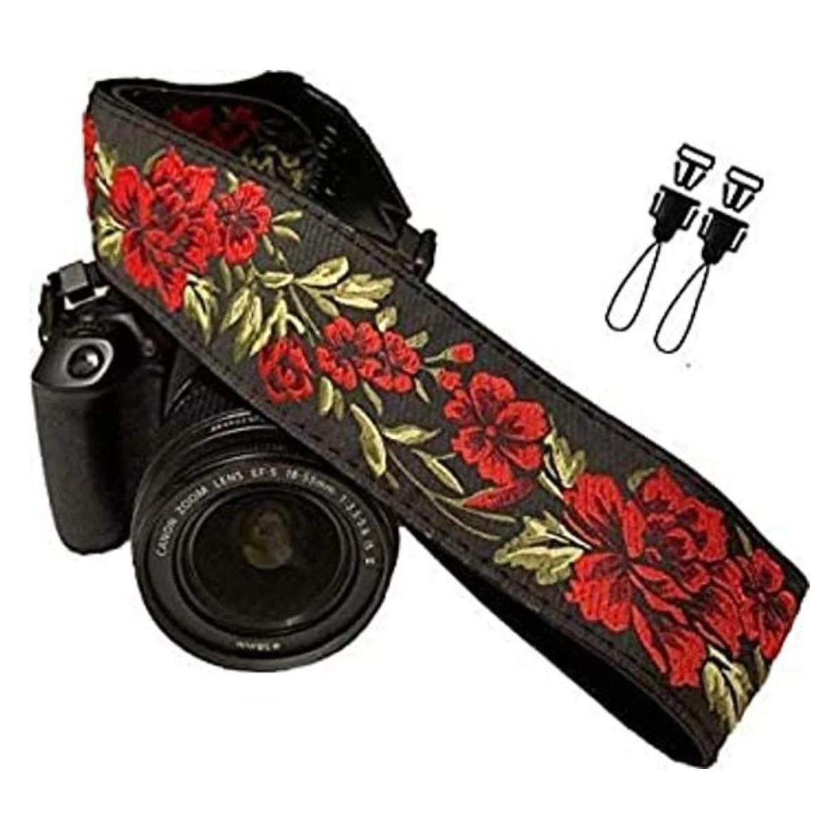 Correa de cámara con flores de rosas para todas las cámaras réflex digitales de algodón, elegante correa universal para el cuello y el hombro, el mejor regalo para hombres y mujeres fotógrafos