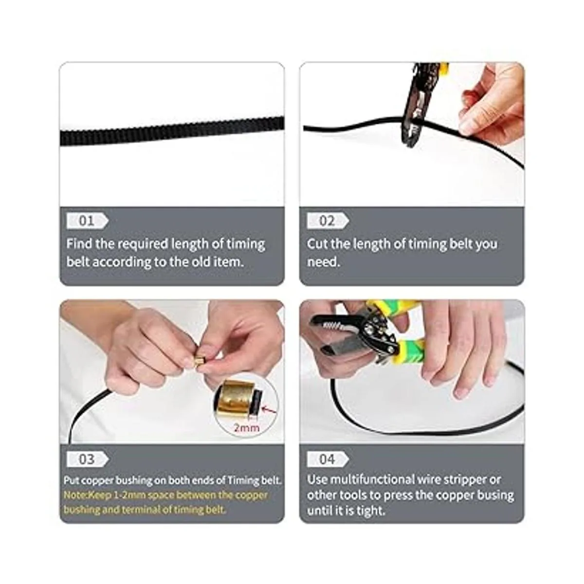 El paquete incluye: correa de distribución para impresora 3D de 6.6 ft de longitud con 6 fundas de cobre.