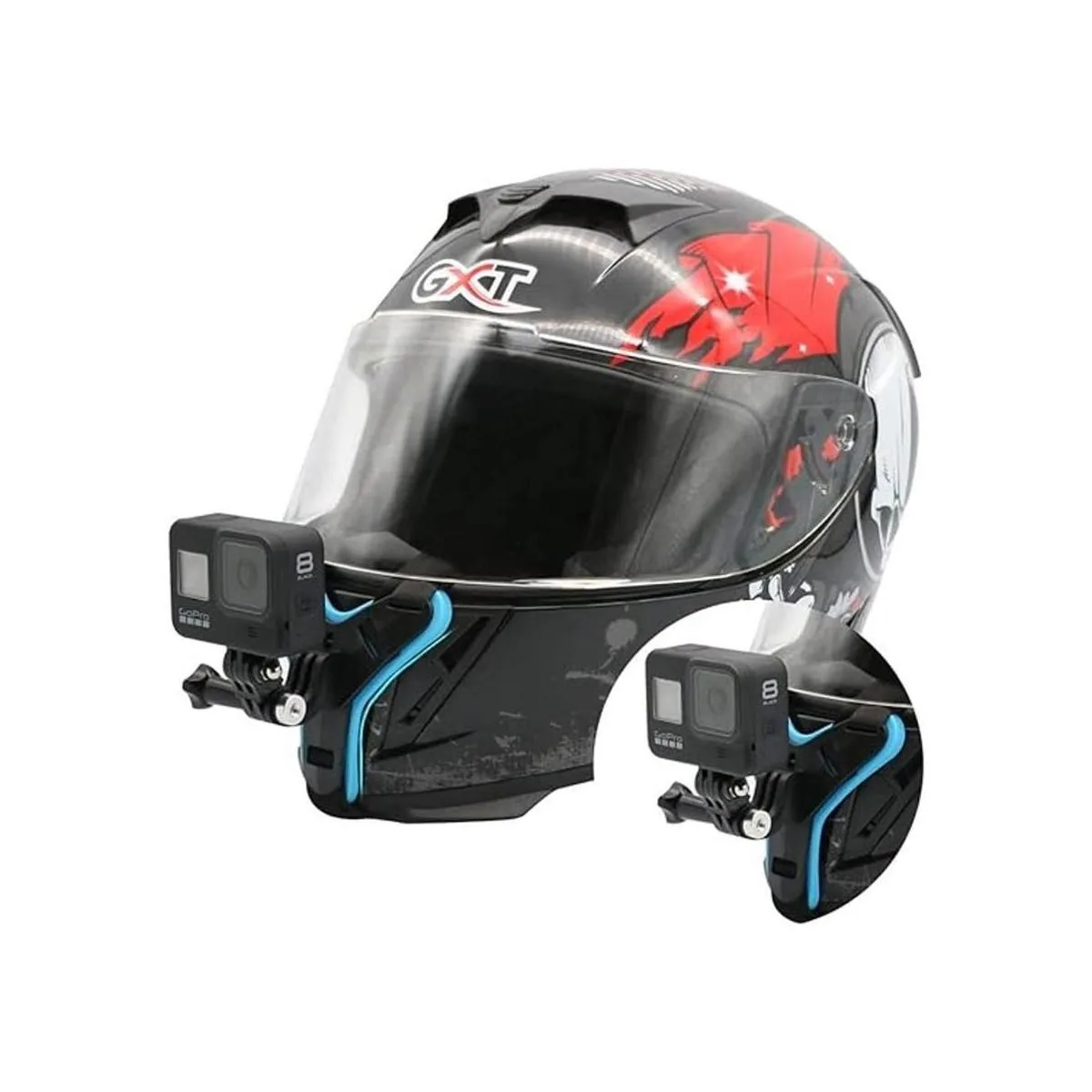 Absorción de golpes antideslizante: instala una cámara deportiva o grabadora de conducción en el casco de la motocicleta. La protrusión en la parte posterior del casco de motocicleta con soporte de barbilla evita eficazmente que la cámara se deslice y garantiza un disparo suave. Reduce la vibración y graba cada momento de tu viaje perfectamente.
