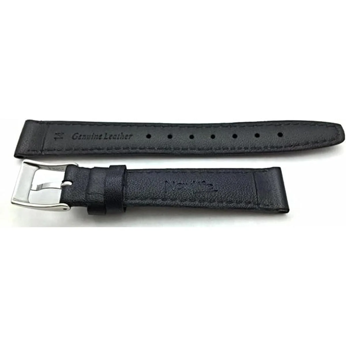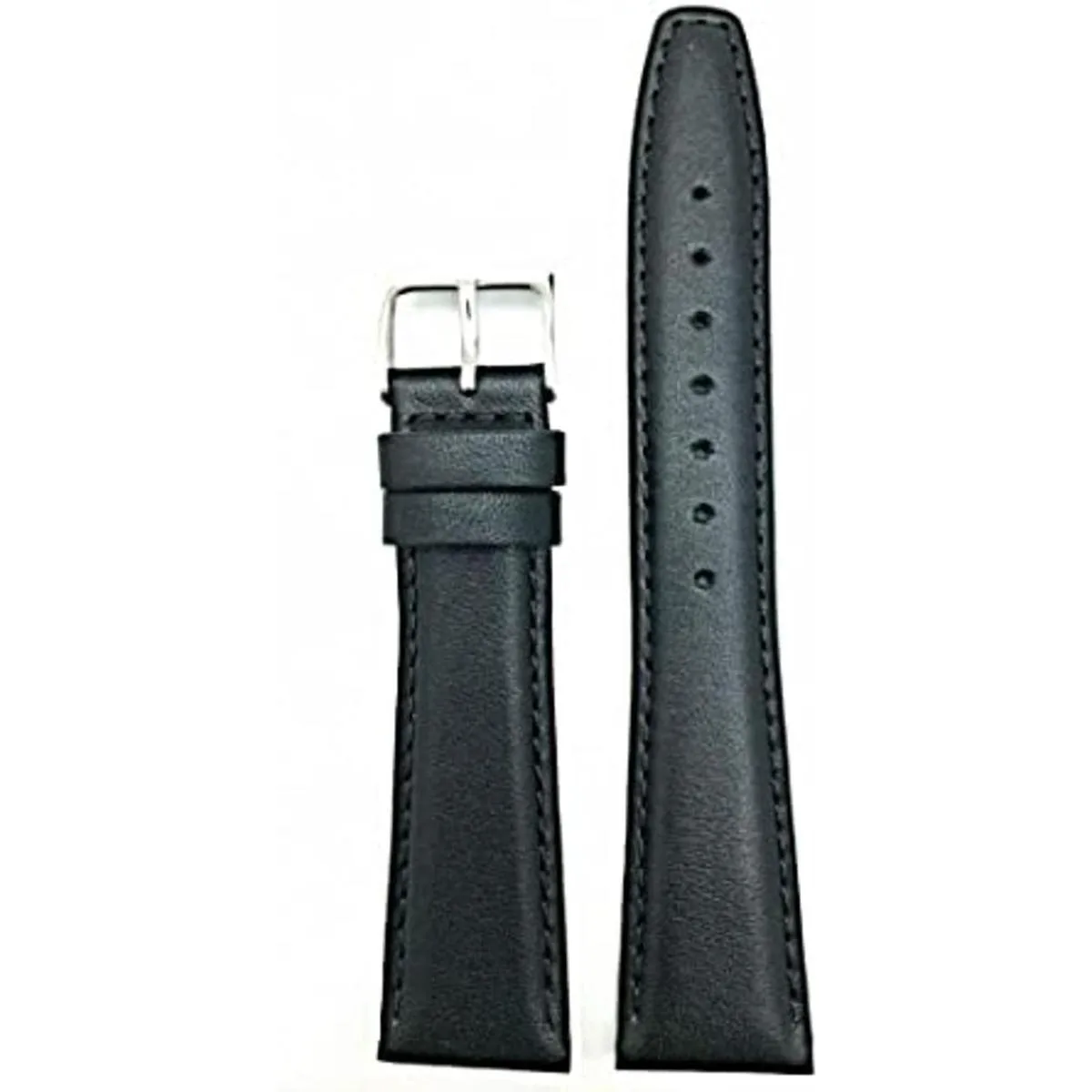 Correa de reloj de cuero negro de 0.551 in para mujer con acero inoxidable pulido, cierre de hebilla de metal plateado. Esta correa de reloj negra de 0.551 in es el complemento perfecto para cualquier estilo de vida