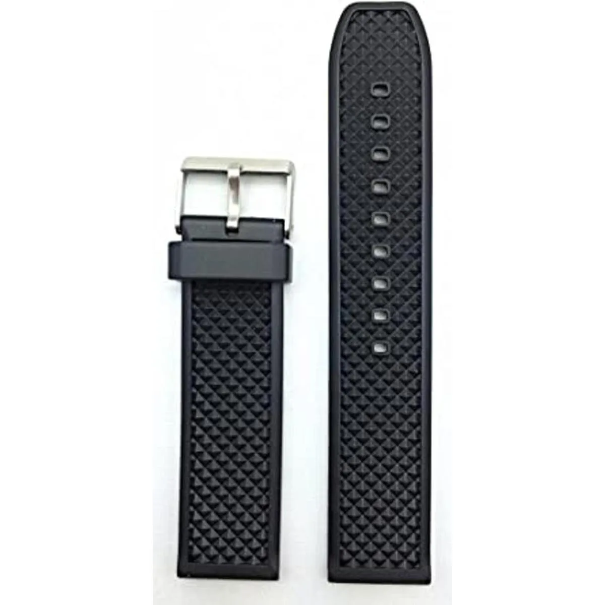 Correa de reloj de PVC negro de 0.945 in con acero inoxidable pulido, cierre de hebilla de metal plateado. Esta correa de reloj de 0.945 in es el complemento perfecto para cualquier estilo de vida