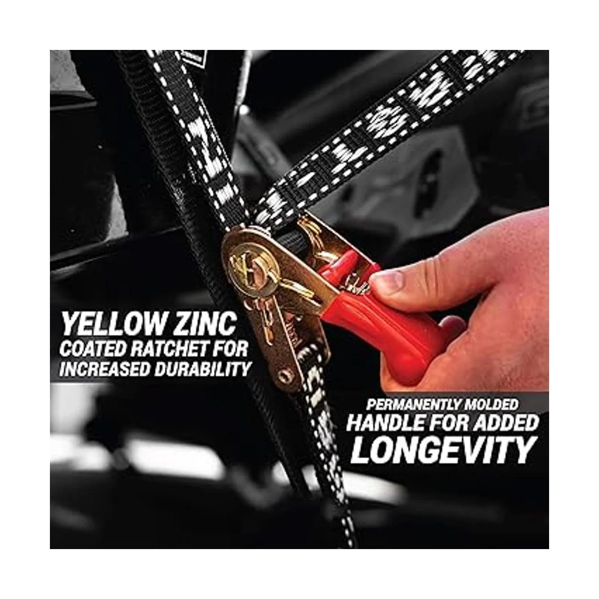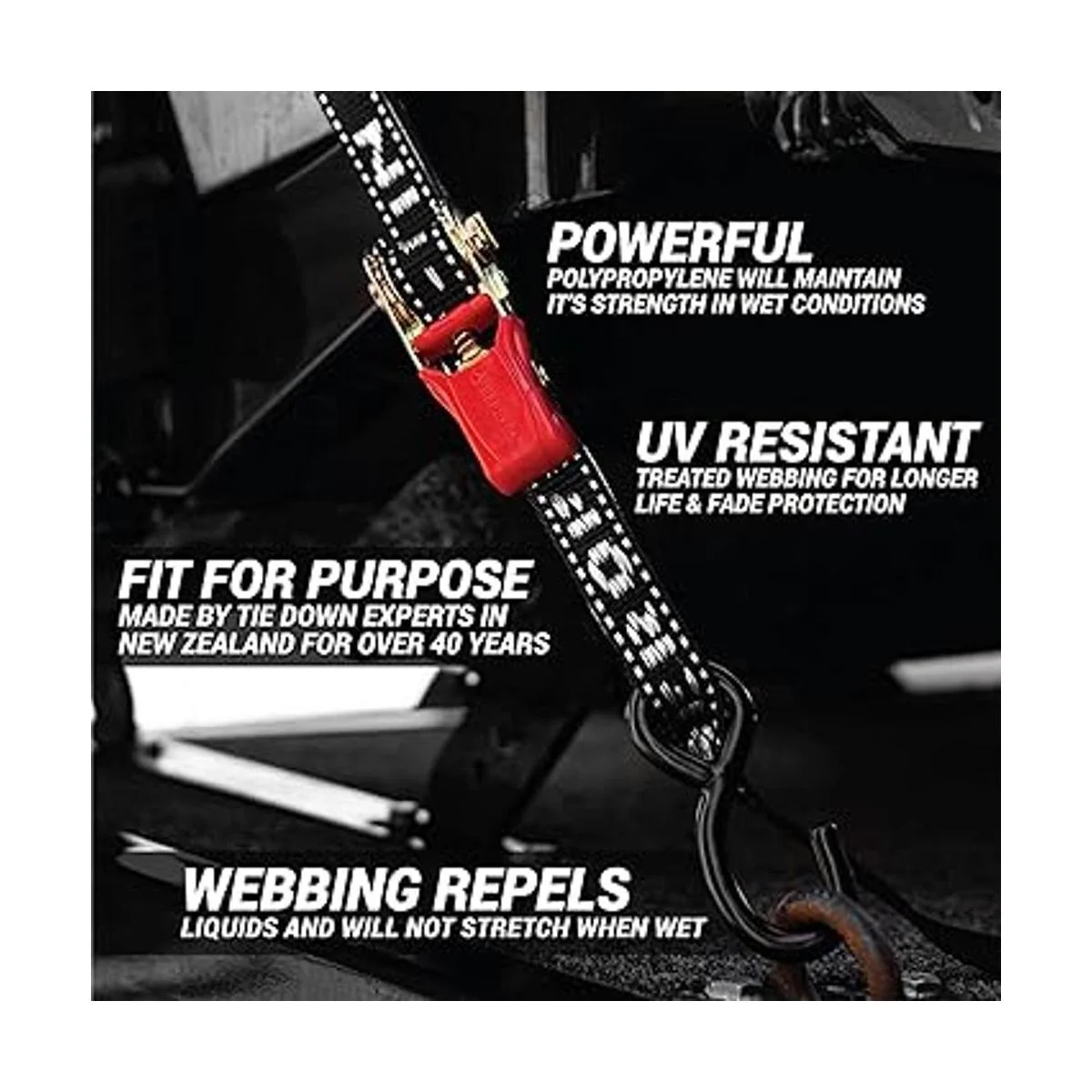 Correa de trinquete para remolque paquete de 2 correas de amarre para barcos fabricadas en Nueva Zelanda con resistencia superior de 2.400 libras tratadas con rayos UV, correas de trinquete resistentes de 1 x 2.5 pies, amarres para remolque