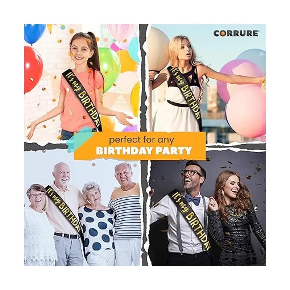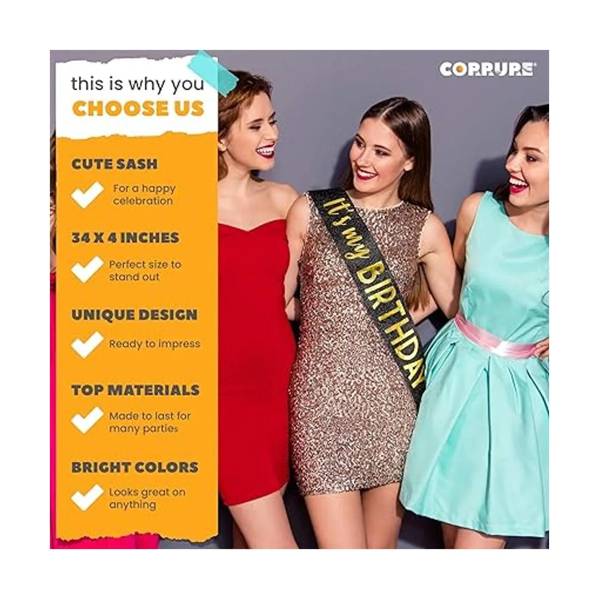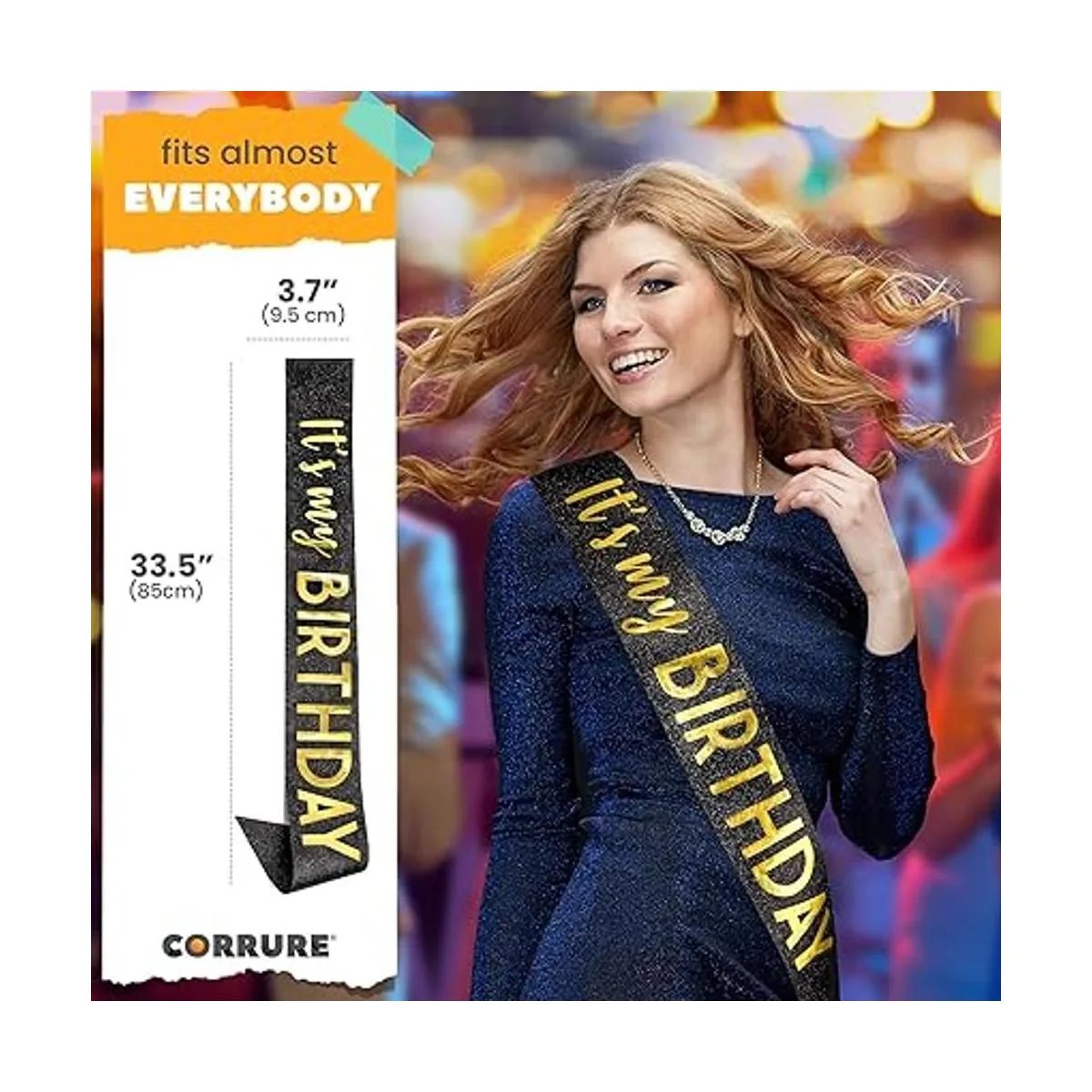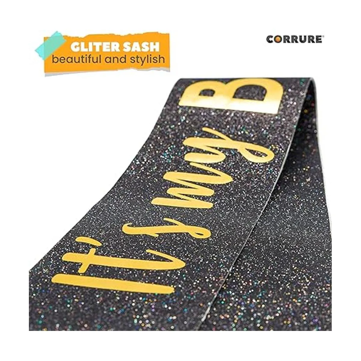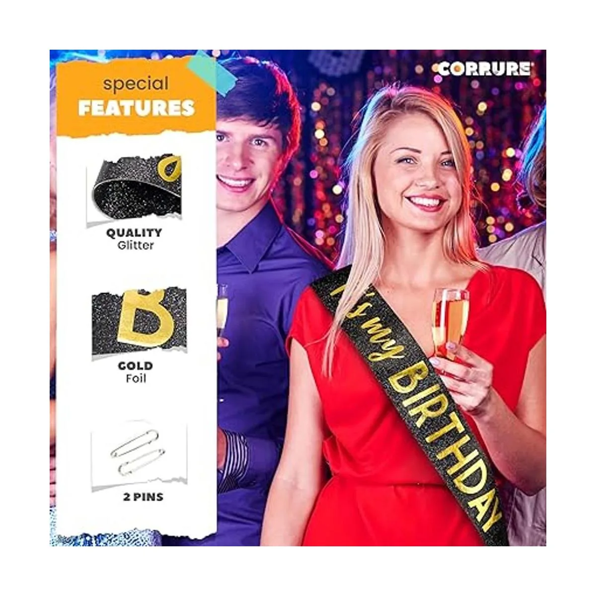 CORRURE Banda con purpurina para hombres y mujeres, con lámina dorada metálica, banda negra con purpurina para cumpleaños 18, 21, 25, 30, 40, 50, o cualquier otro día Gran regalo de fiesta