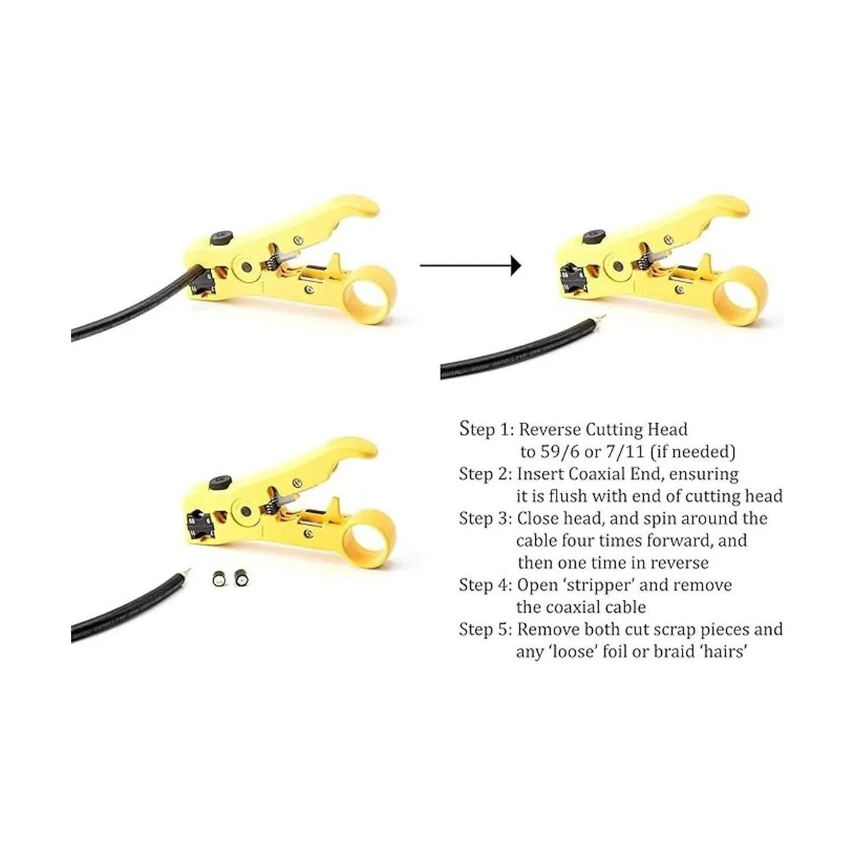 Cortador de cables coaxiales de alta calidad para RG59, RG6, RG7 y RG11 Herramienta de pelado para cables de categoría CAT6 CAT5 CAT3 Universal para cables coaxiales y gatos