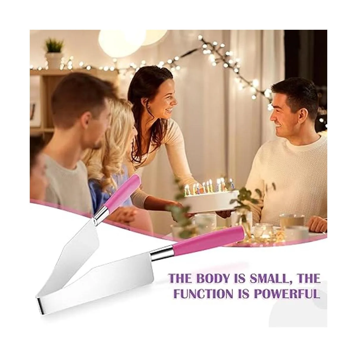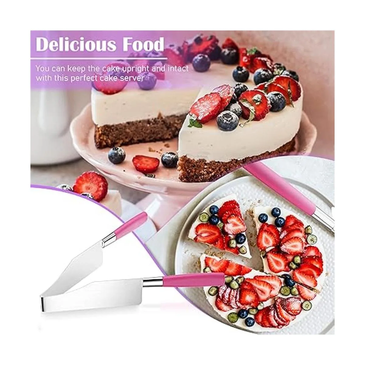 Juego de cortador de tartas: recibirás 2 dispositivos de rebanada de pasteles, con el mango diseñado en rosa, color brillante y cantidad suficiente que puede satisfacer fácilmente tus necesidades de uso diario y reemplazo, y también puedes compartirlos con tus amigos