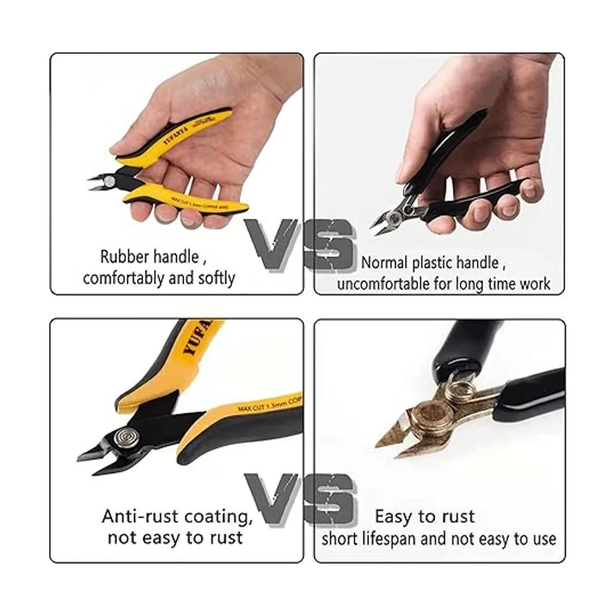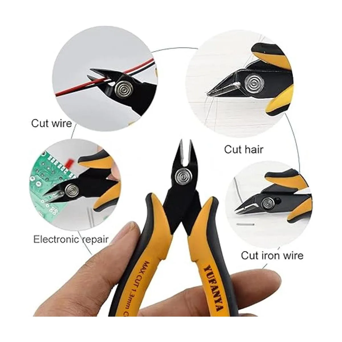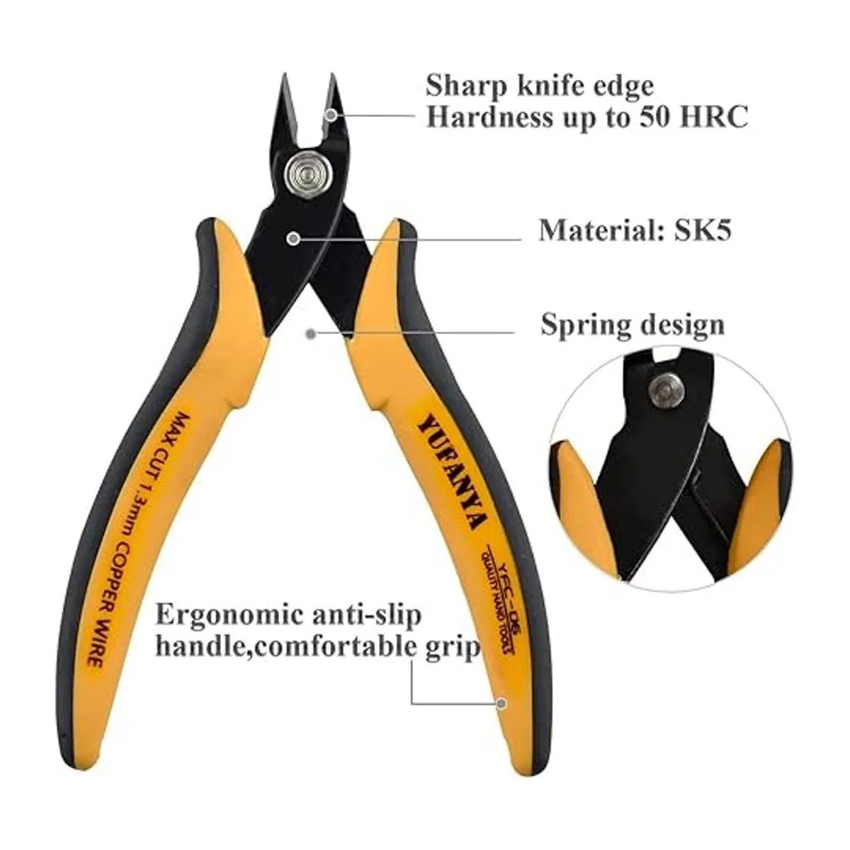 Cortador micro empotrado, cortador lateral ultra afilado con resorte interno y mango de goma suave, alicates de corte diagonal para electrónica, fabricación de joyas, plástico, lazos de cremallera, amarillo y negro