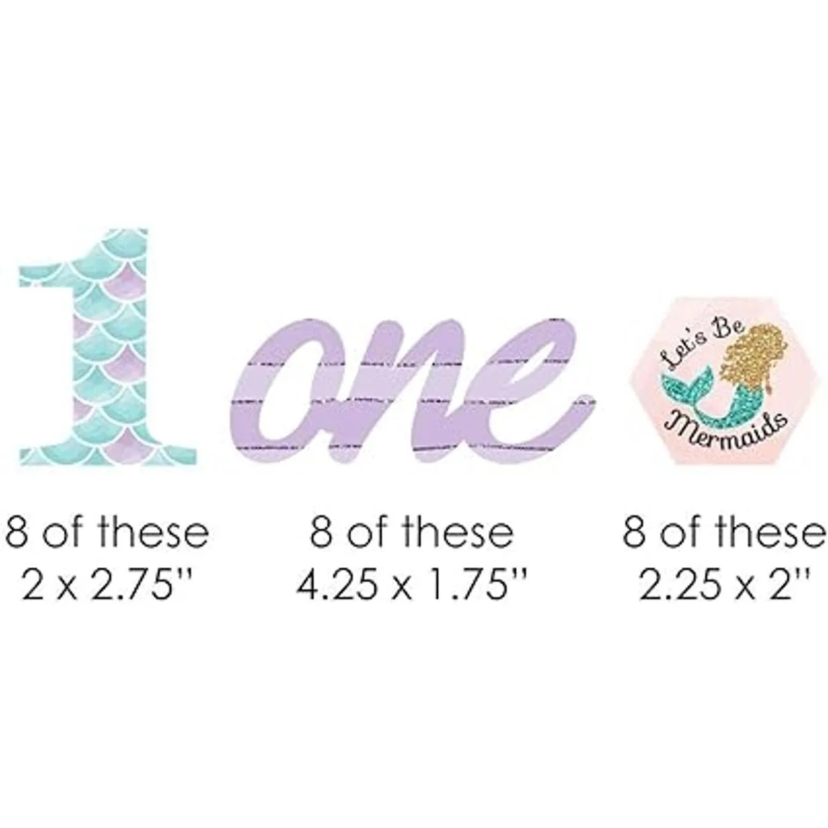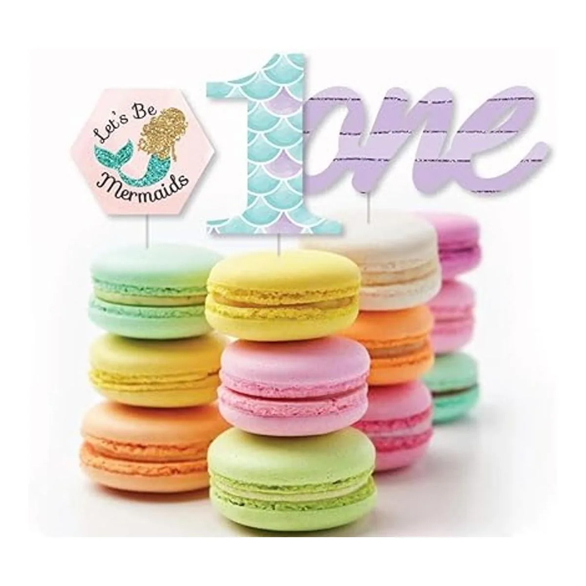 Cortes de fiesta de primer cumpleaños, diseño con texto en inglés Lets Be Mermaids, 24 unidades