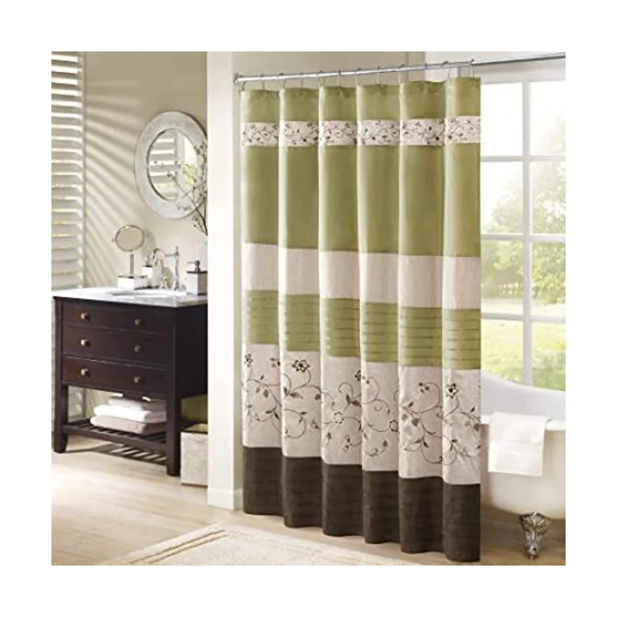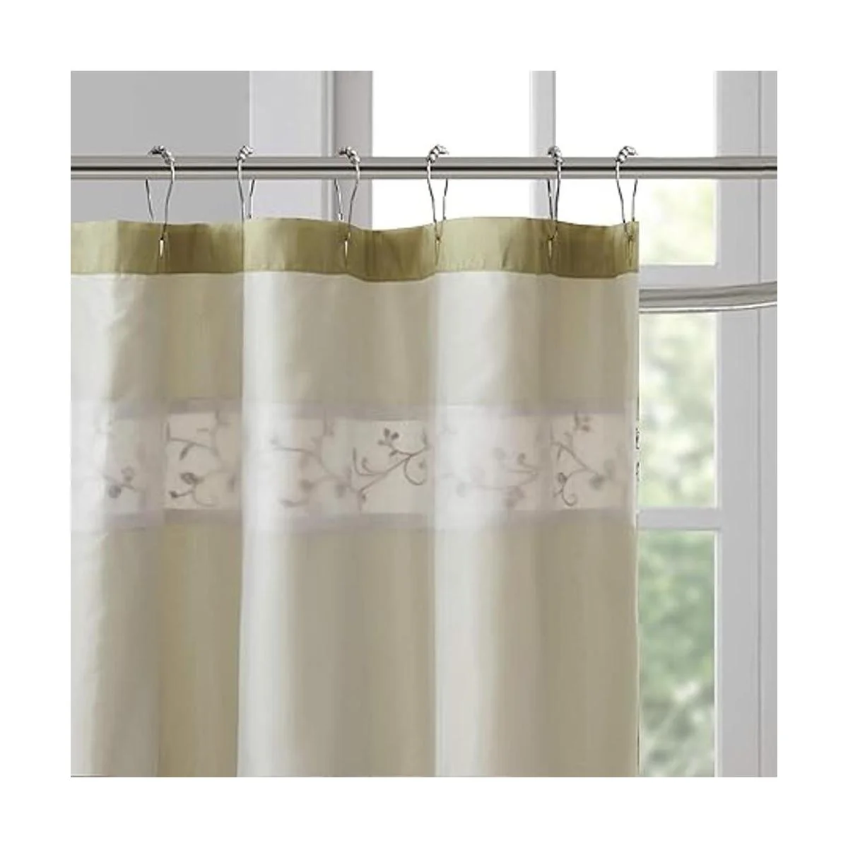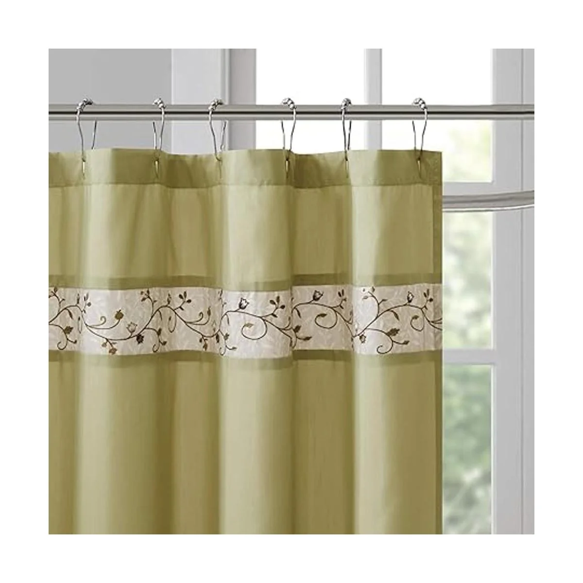 COLOR AND DESIGN 1 piece green shower curtain; Its soft yellow pairs with delicate floral embroidery for the perfect combination, add an elegant addition to your bathroom. Complete the look with coordinating bedding available and sold separately.