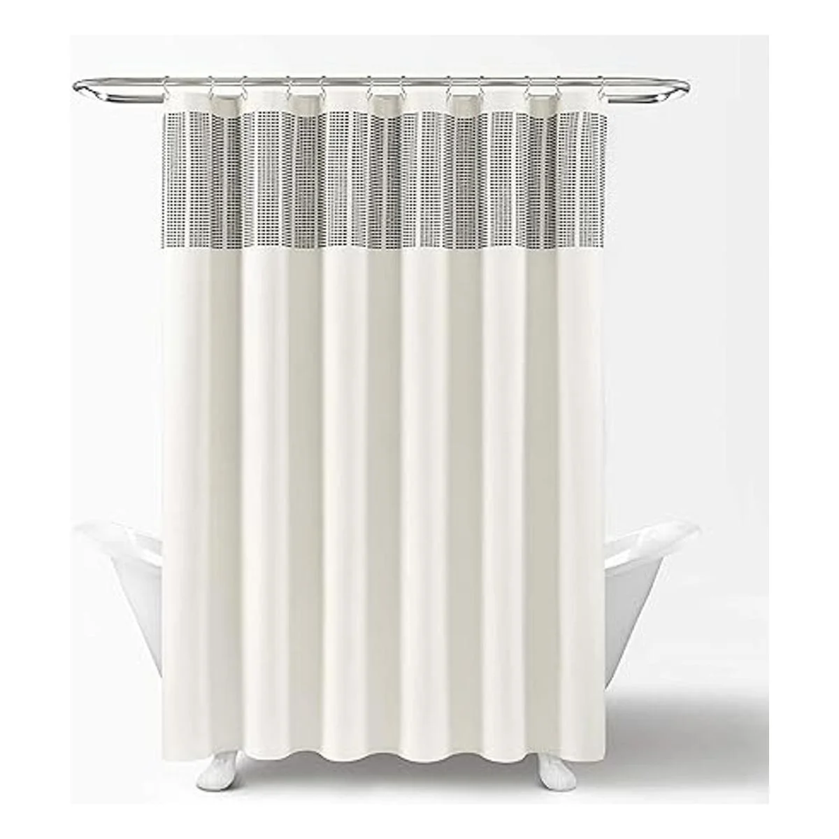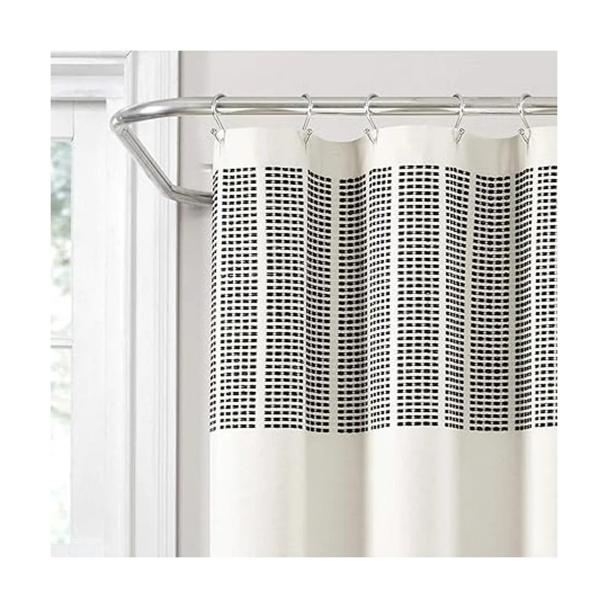 Cortina de ducha de algodón teñida con hilo de rayas, 71.7 x 71.7 in, marfil y negro