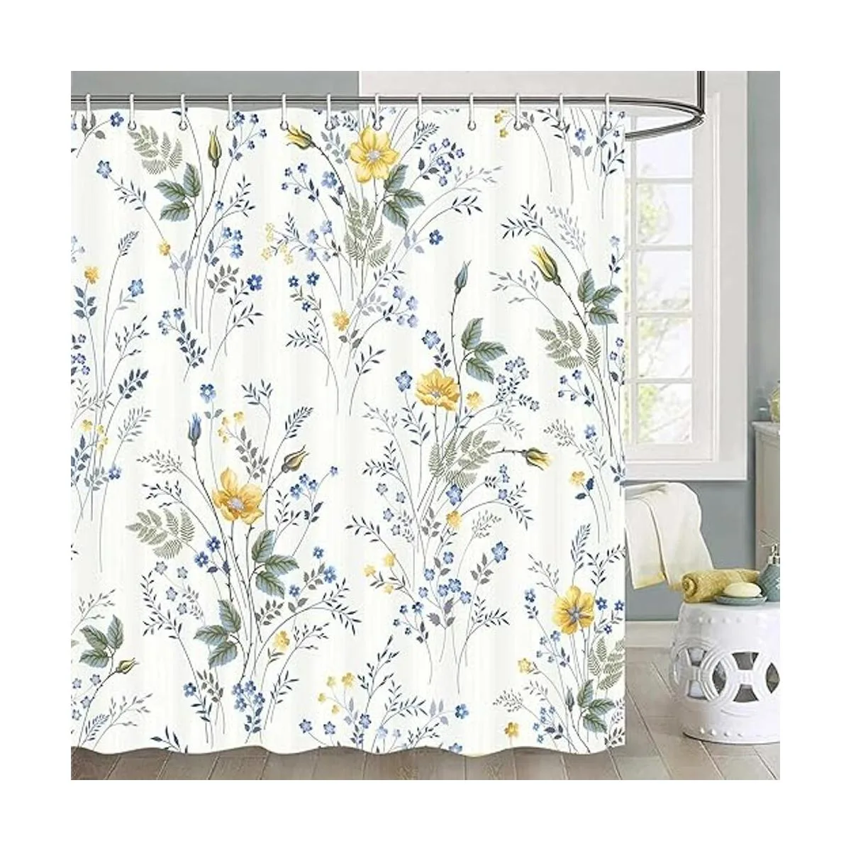 Tamaño de la cortina de ducha de flores coloridas azules y amarillas: mide 70 x 70 pulgadas, se adapta a la mayoría de baños y bañeras.
