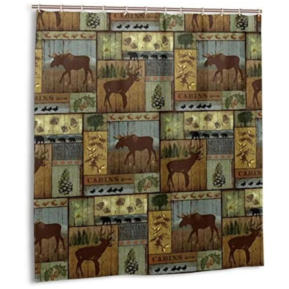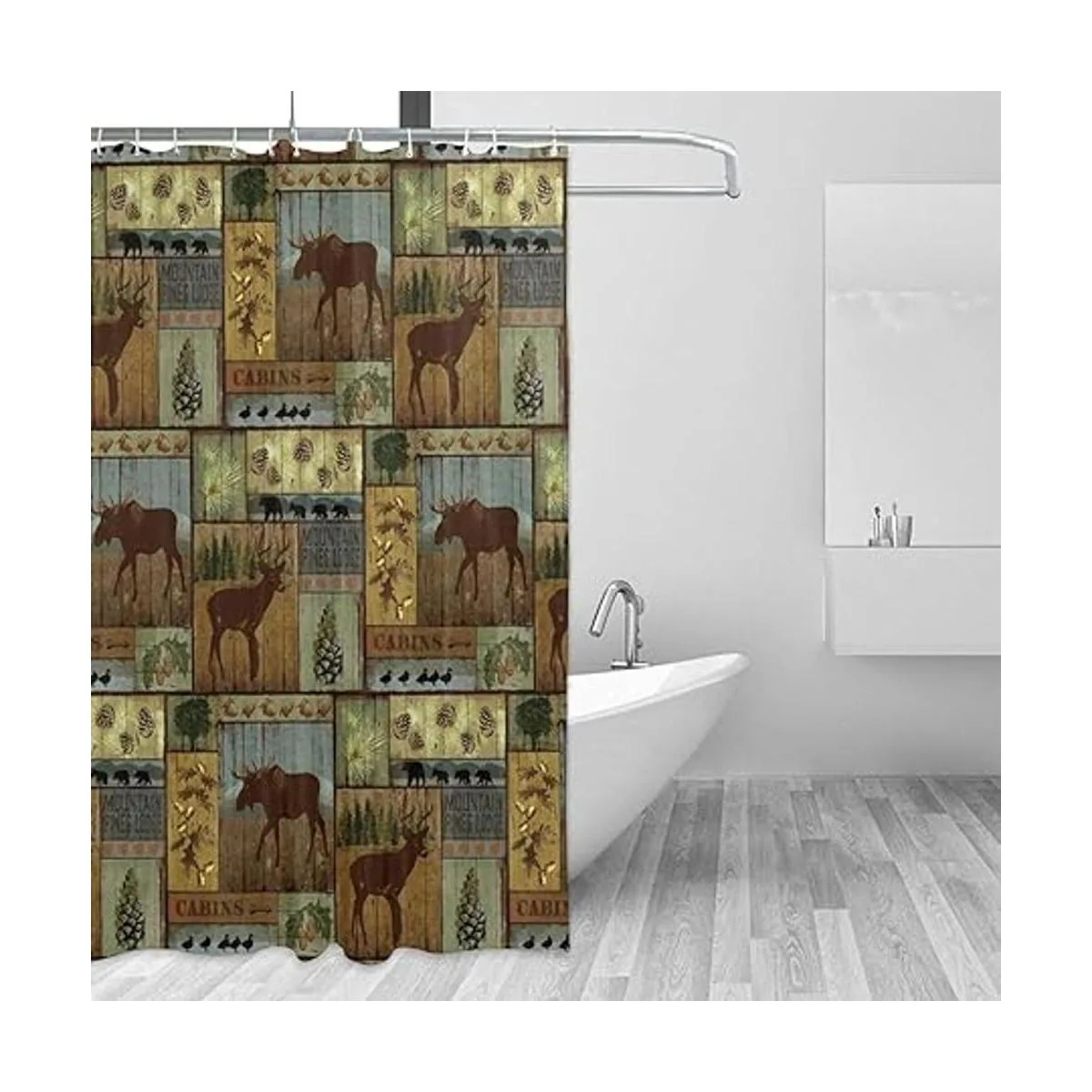 Cortina de ducha rústica retro para decoración de cabaña, estilo American Lodge Nature Wildlife Design Cortinas de baño de tela de poliéster, accesorios de baño con ganchos de 66 x 72 pulgadas