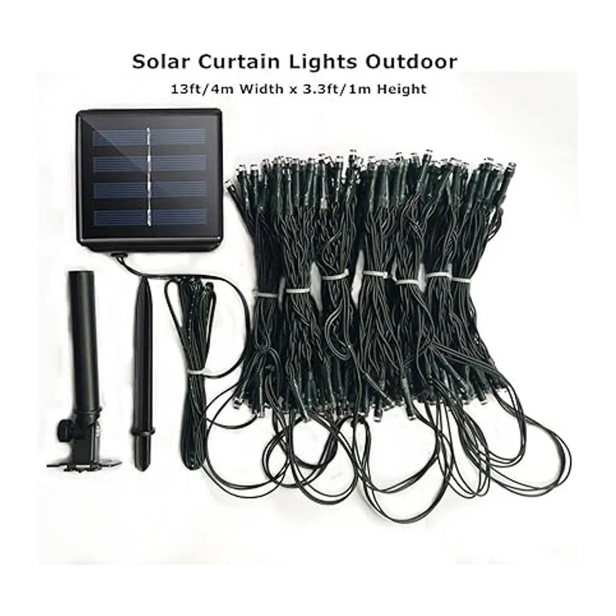 Cortina de luces solares para exteriores, 13 pies de largo x 3.3 pies de alto, 8 modos, 200 LED, tira de luces solares para valla de vidrio de piscina, barandilla, aleros, pared, pabellón, decoración de arco de boda, impermeable, verde oscuro, blanco cálido