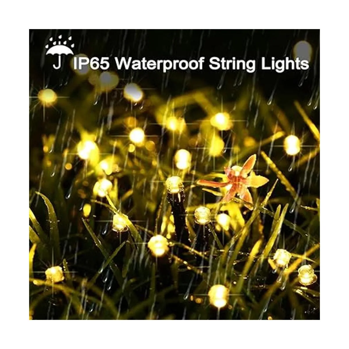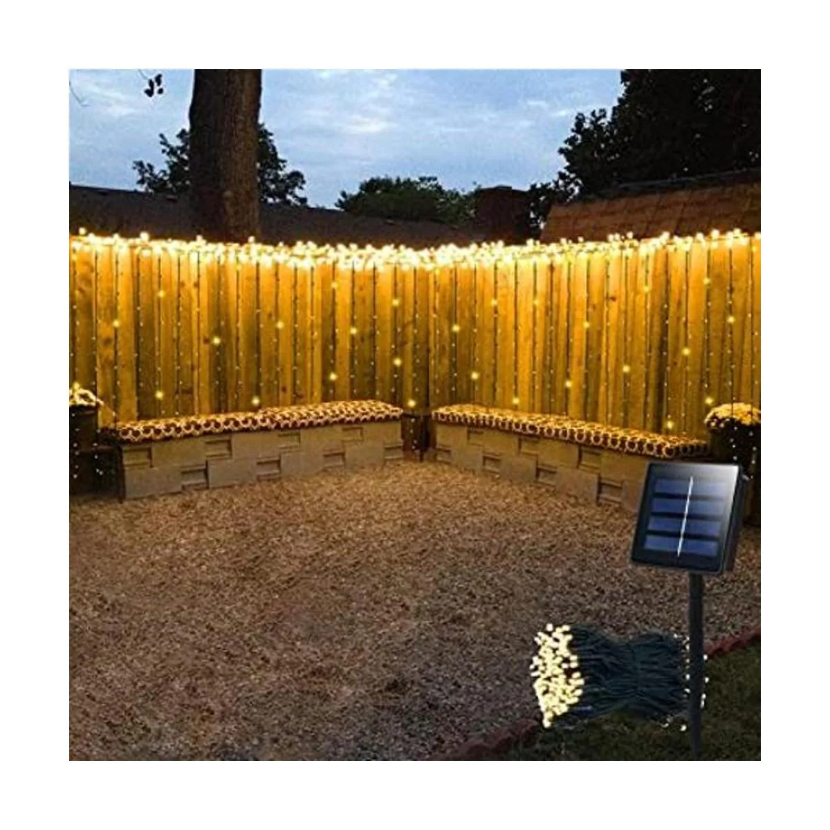 Resistente al agua y largo tiempo de trabajo: batería integrada de alta calidad y panel solar más grande de 1200 mAh que puede iluminar hasta 8 horas por la noche si el panel absorbe suficiente sol durante el día. Tanto la cadena de luces como el panel solar son impermeables IP65. No te preocupes por usarlos bajo la lluvia.
