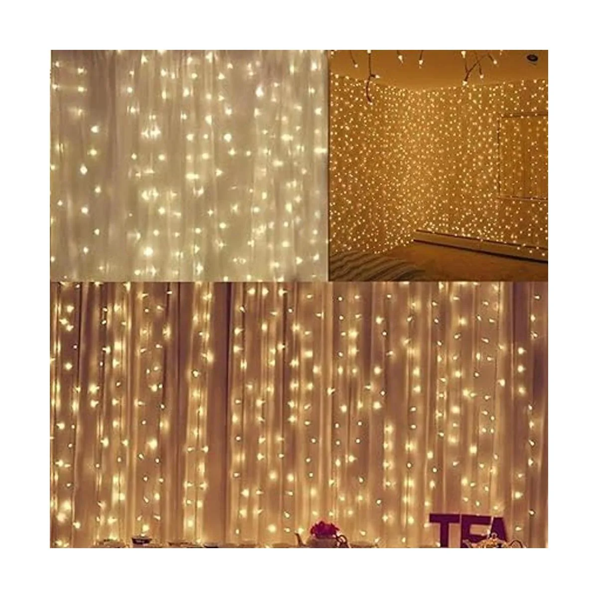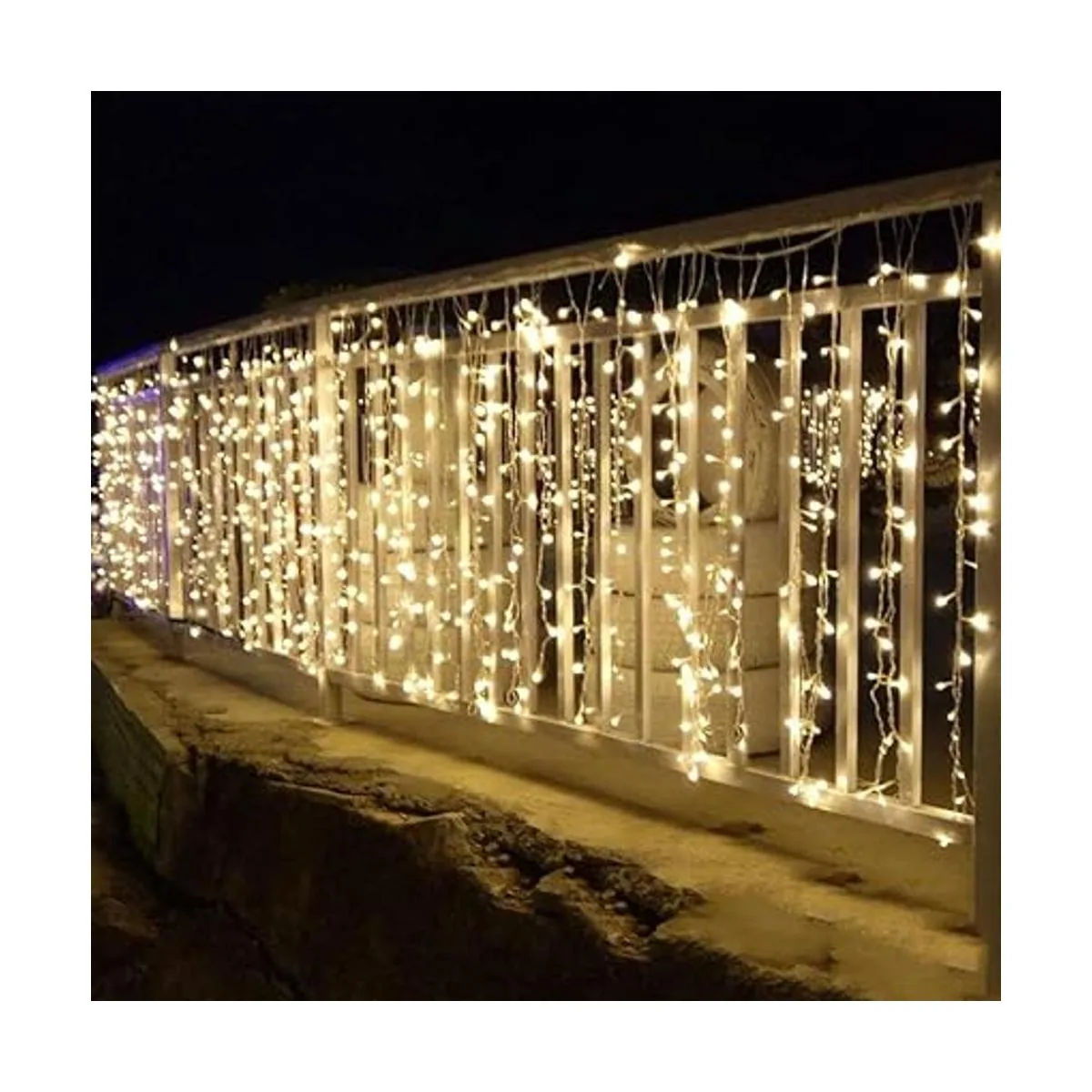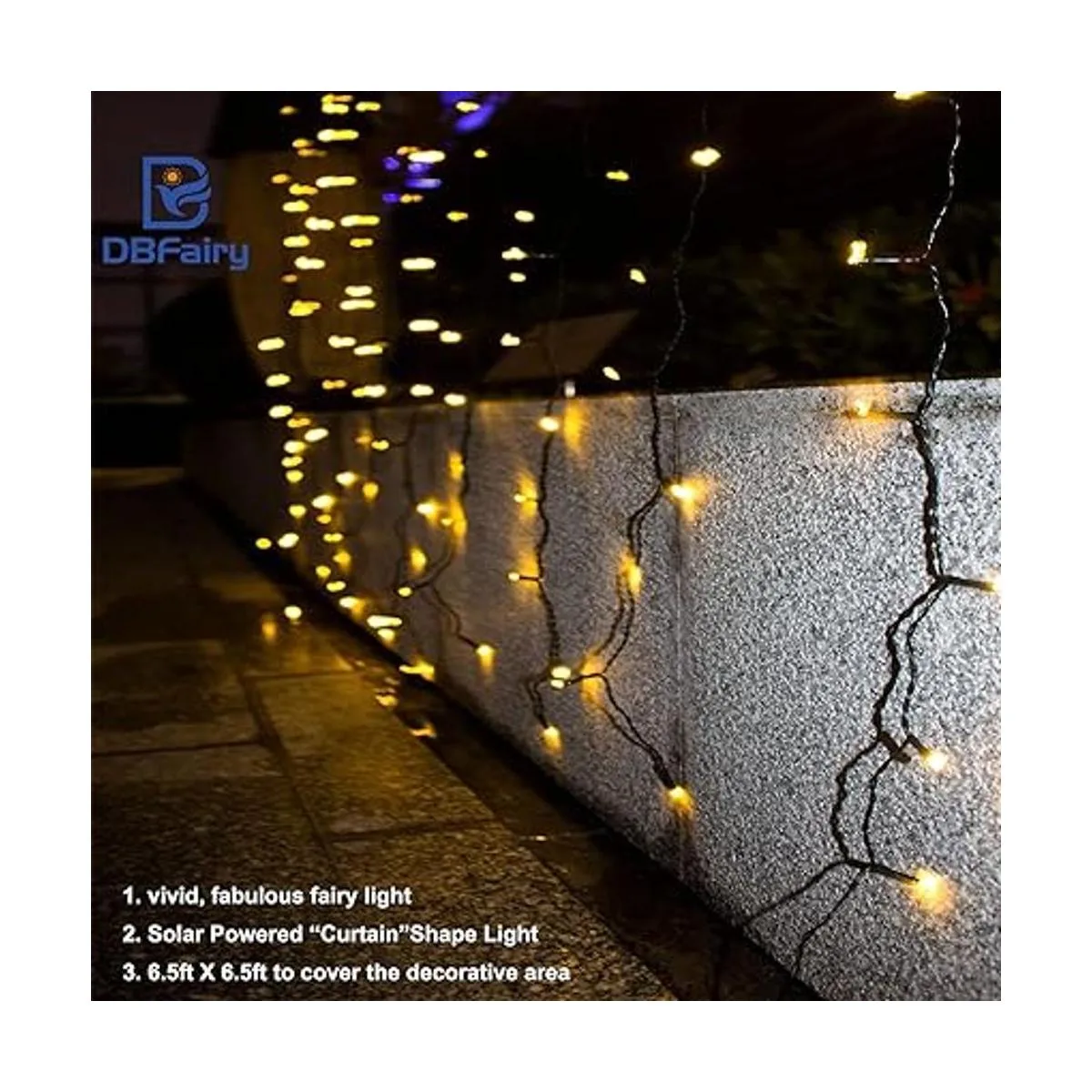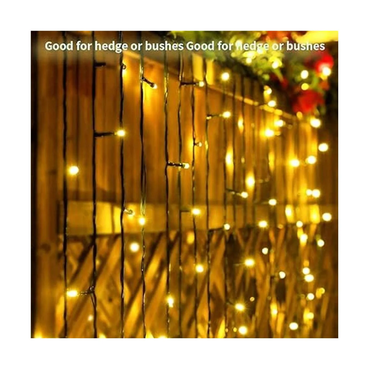 Buen tamaño: 13 pies de largo x 3.3 pies de alto, 200 LED, cable verde oscuro: 13 pies de largo x 3.3 pies de alto, 200 LED de resaltado, las luces pueden cubrir una gran área que puede crear ambientes hermosos y cálidos para tu vida. El cable verde oscuro se puede ocultar fácilmente por la noche, más encantador